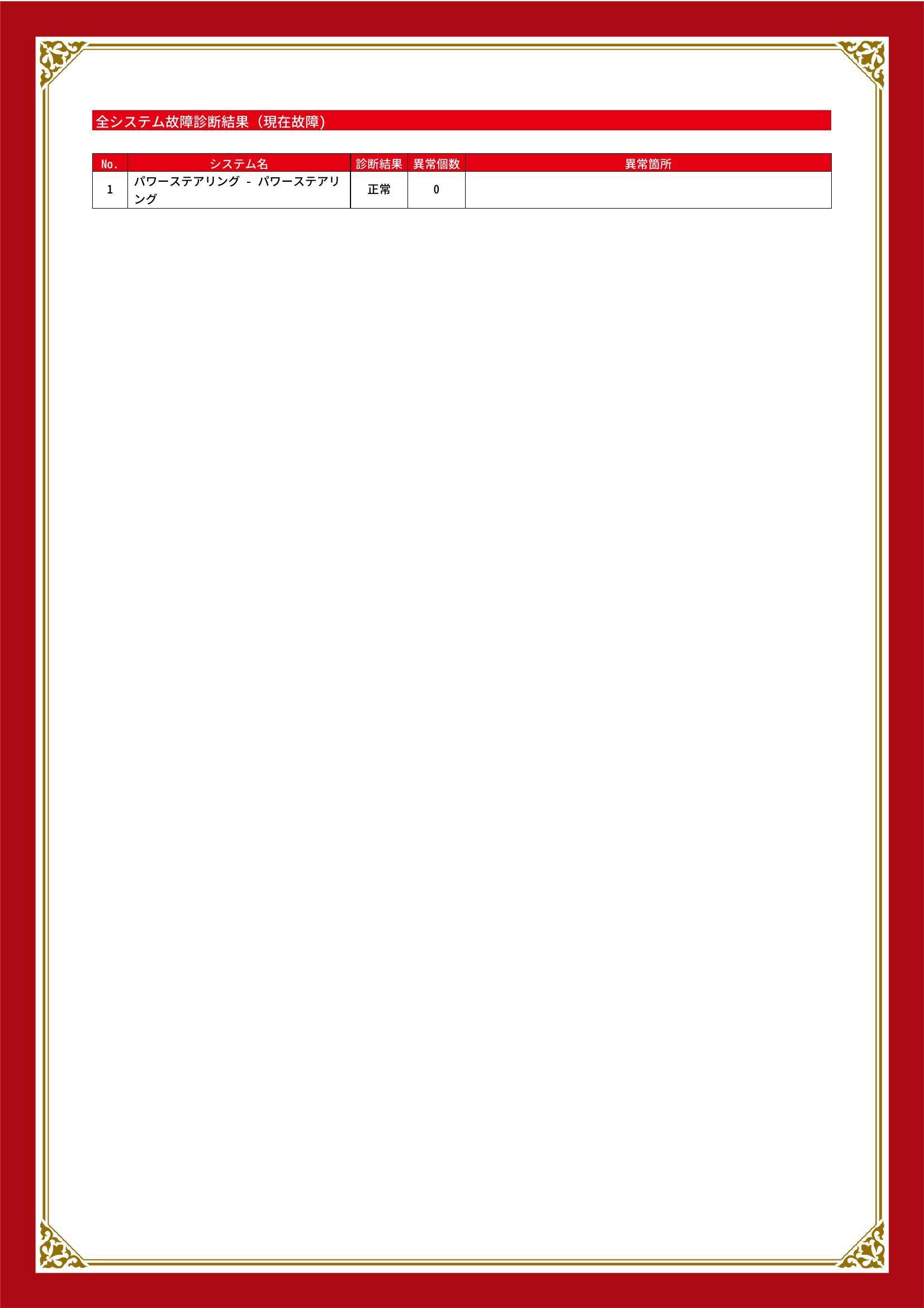 | 保証項目 | 3ヶ月・3000km以内ならエンジン、トランスミッション、ハイブリッド、ステアリング、ブレーキの各機構における主要項目を無償修理(または交換)いたします。 |