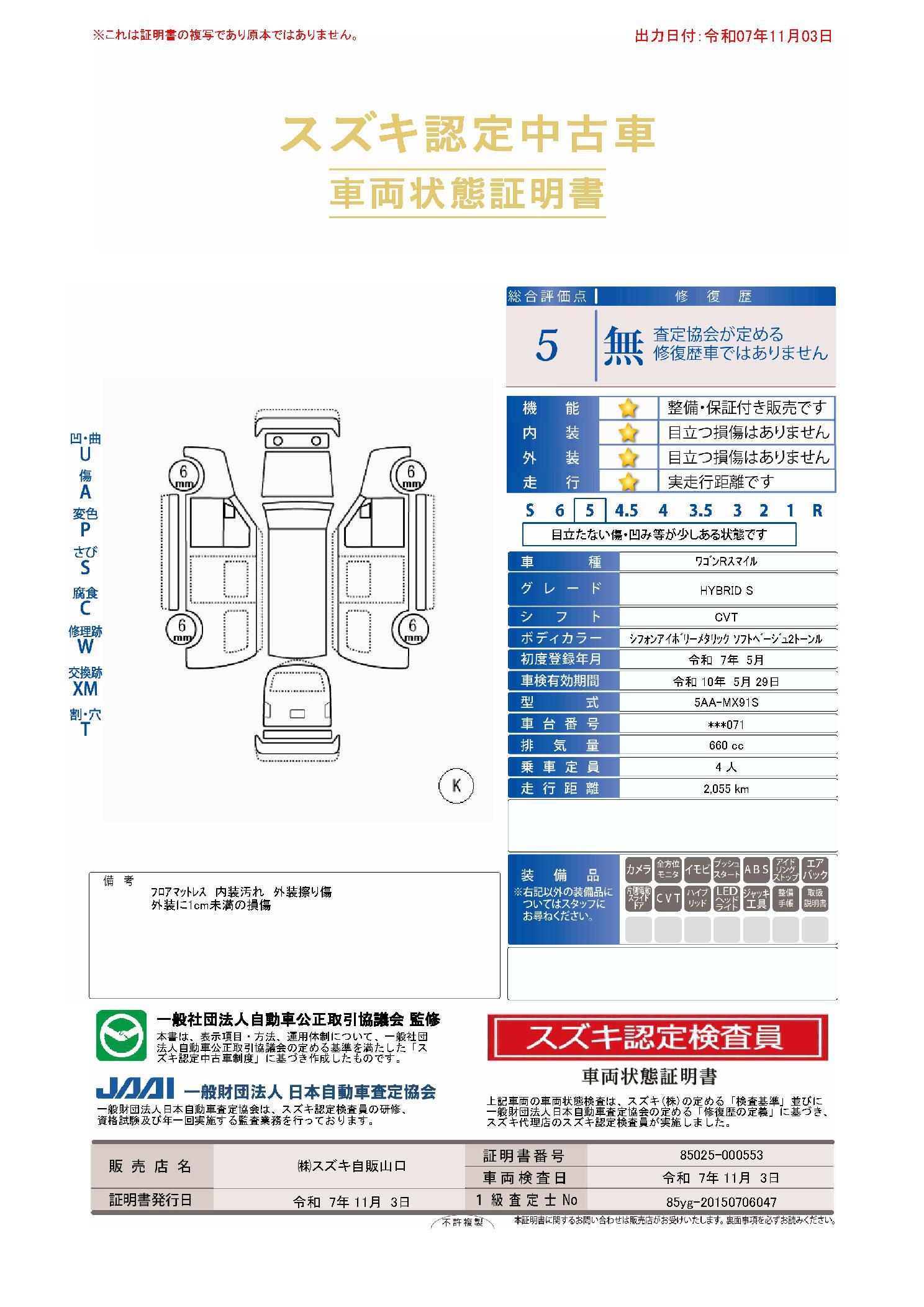 | 保証について | [保証付]:2028(令和10)年5月まで・60000km ※いずれか早い時期が保証適用の条件となります。 |