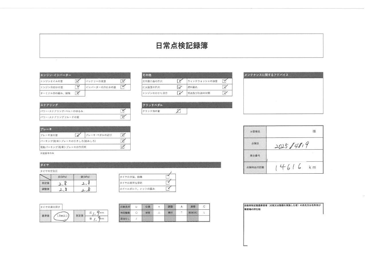[保証付]:3ヶ月・3000km ※いずれか早い時期が保証適用の条件となります。 保証期間中に次の主要部品に不具合が現れ、弊社及びメーカーがその欠陥を認めた場合、該当の部品及び取替を行います。※エンジン内部機構、動力伝達機構、ステアリング機構、前後アクスル機構 |