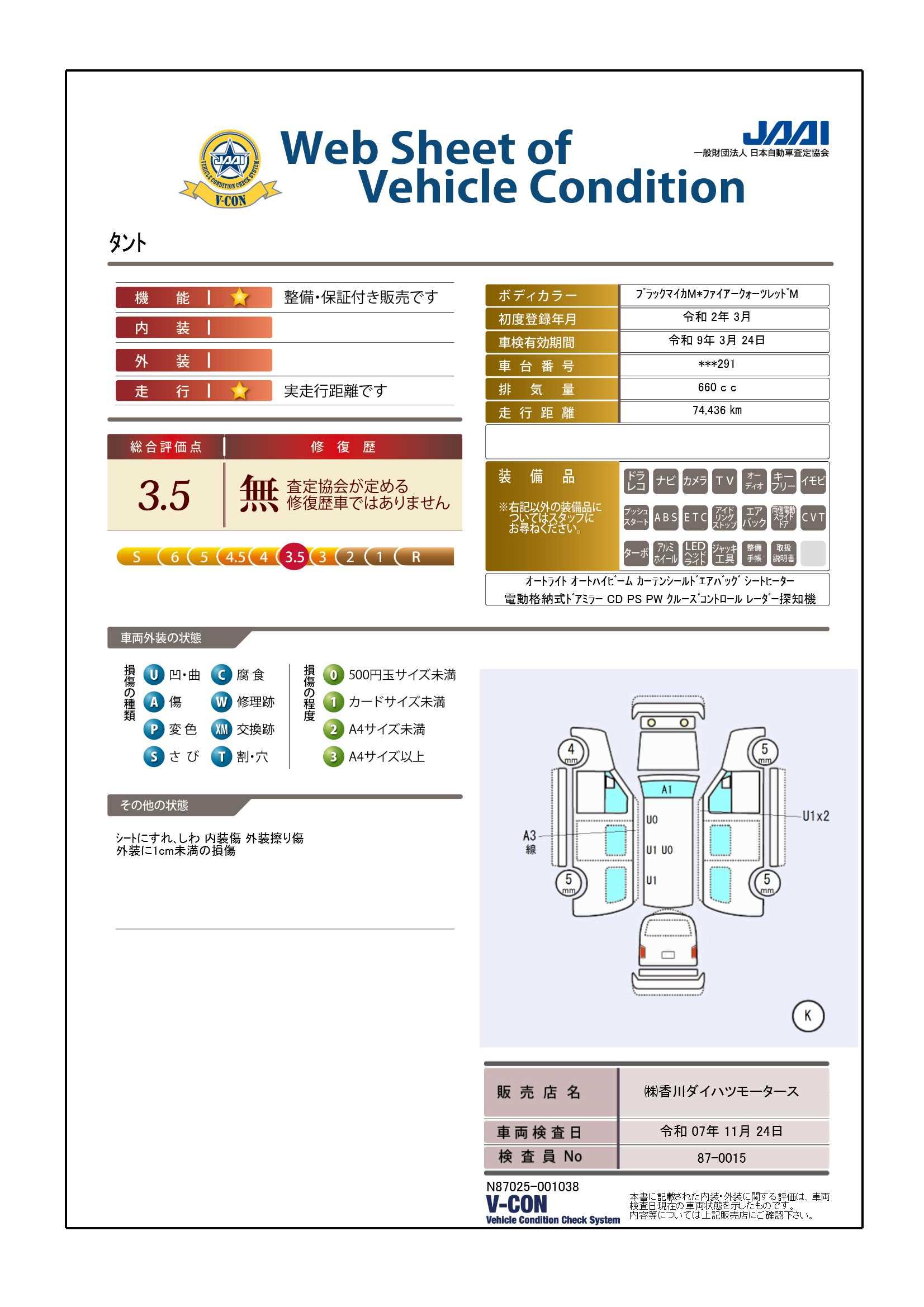 | 保証について | [保証付]:6ヶ月・10000km ※いずれか早い時期が保証適用の条件となります。 |