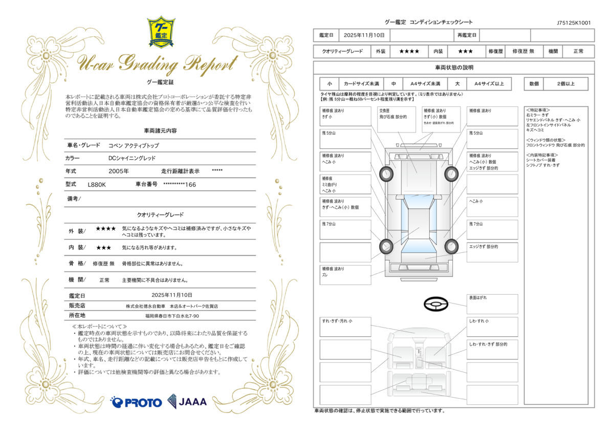 当社は第三者機関のグー鑑定を導入しております。コンディションチェックシートでお車の状態が確認できます。 43