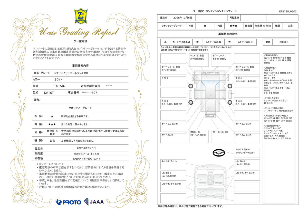 第三者機関の日本自動車鑑定協会(JAAA)の鑑定師が中古車を鑑定。プロが一台一台チェックします。外装・内装・機関・修復歴の4項目について鑑定を行っています。見た目からでは判断がつかない箇所も入念にチェックしています。安心してお車を購入して頂けるように取り組んでいます。