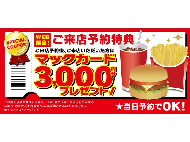 | 用品3点(フロアマット、バイザー、ナンバーリム)とボディ撥水コートが付いた「乗り出しパック」です! |