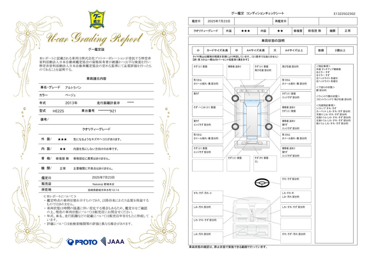 [保証付]:3ヶ月・3000km ※いずれか早い時期が保証適用の条件となります。 ー保証適用除外事項ー*弊社工場以外で修理された場合*CD・ナビ・TV等の電装品*故意又は過失に伴う故障*使用による消耗、経年にともなう劣化車両の機能に一般的に影響が無いと認められている感覚的現象 |