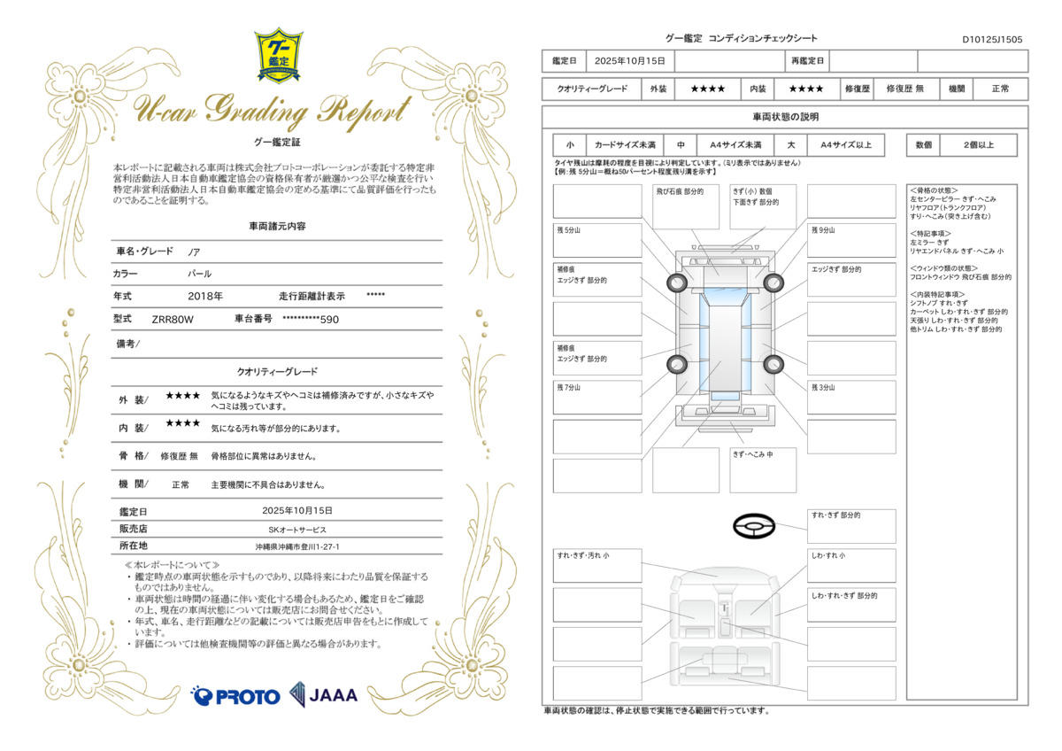 当社はお車が入庫後第三者機関JAAA日本鑑定協会にて鑑定を実施し鑑定書をお付けしてお車を販売させて頂いています!ご購入頂くお客様の為に細かく鑑定を行いご安心頂けるお車を販売させて頂いています! 3