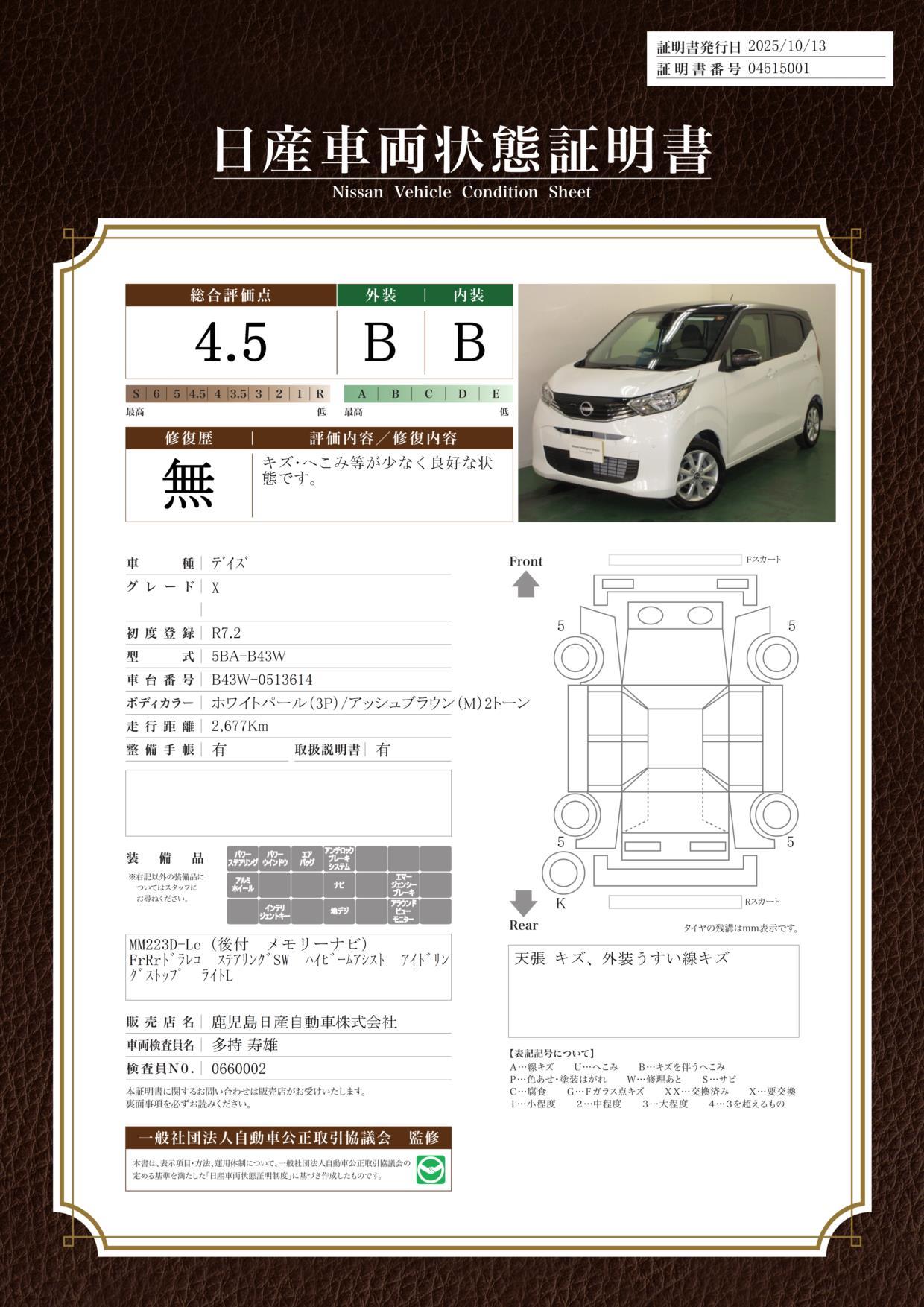 • また、修復歴・法定整備・保証の有無ならびに詳細内容につきましても、必ず各販売店にご確認いただきますようお願いいたします。
