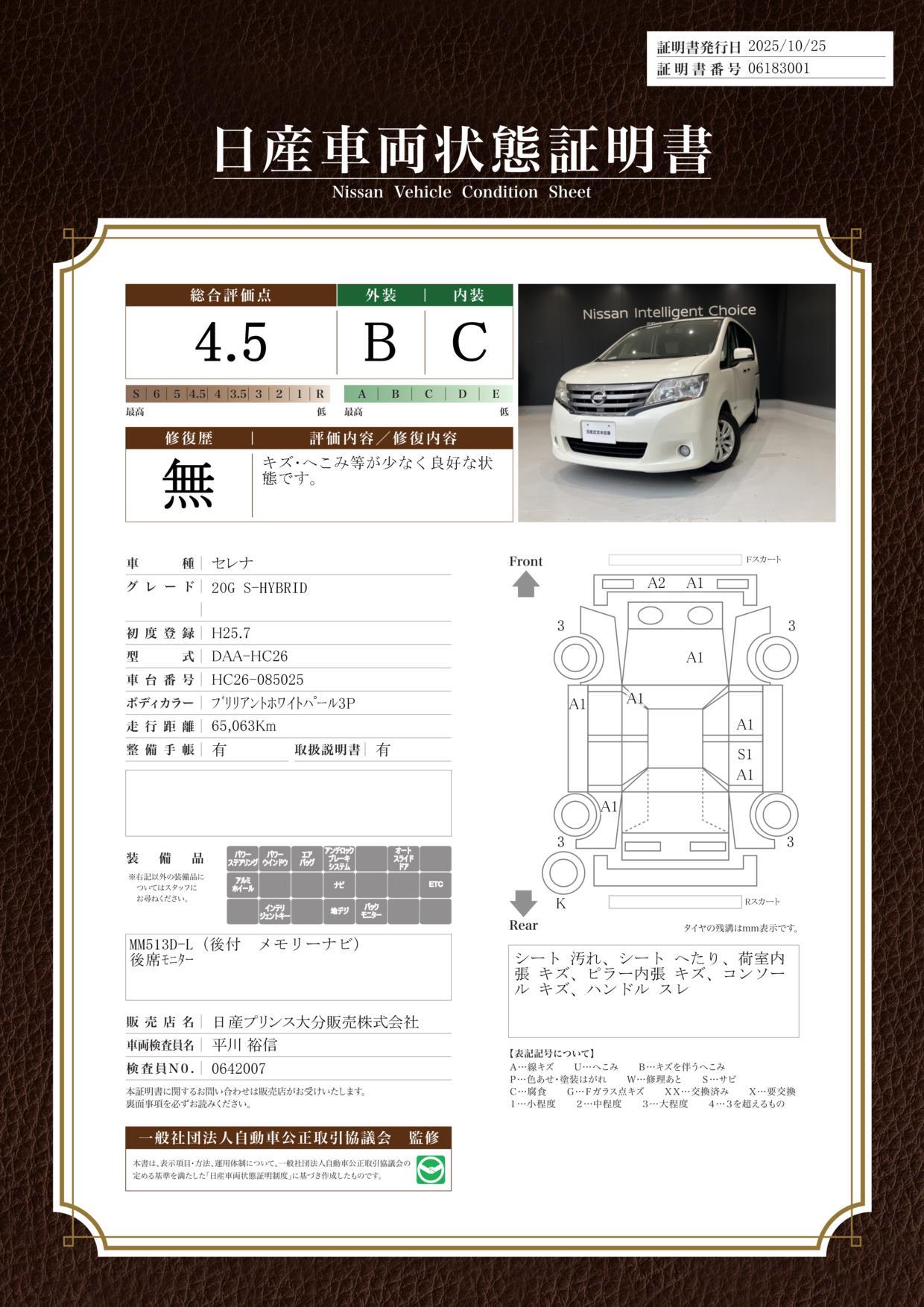 日産テクニカルスタッフが責任を持って、クルマの隅々まで最大104項目(走行距離&車検取得時によって異なります)にわたる点検整備を実施致します。当店でお車をお買い上げ頂いたお客様には、厳格な判断基準をクリアしたお車だけをベストコンディションに仕上げてお届け致します。