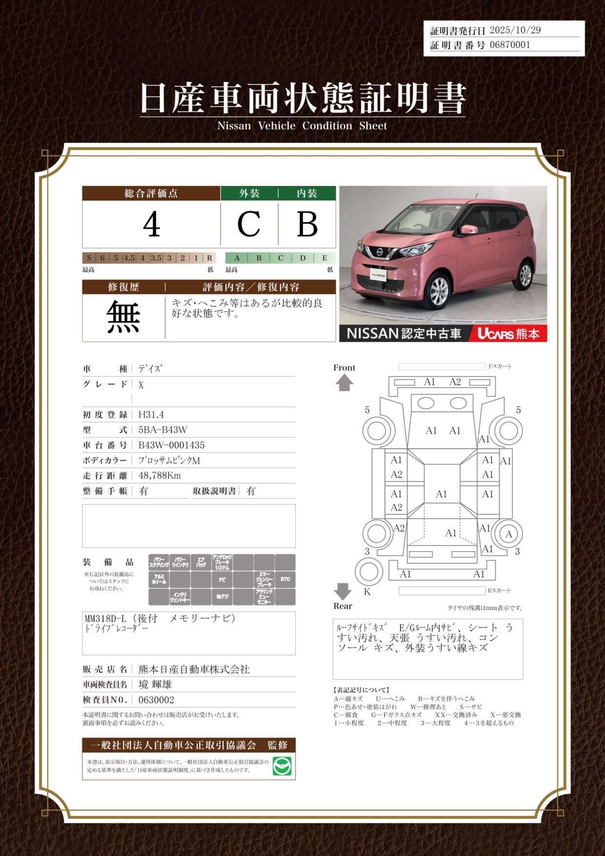 | 保証について | [保証付]:12ヶ月・走行無制限 |