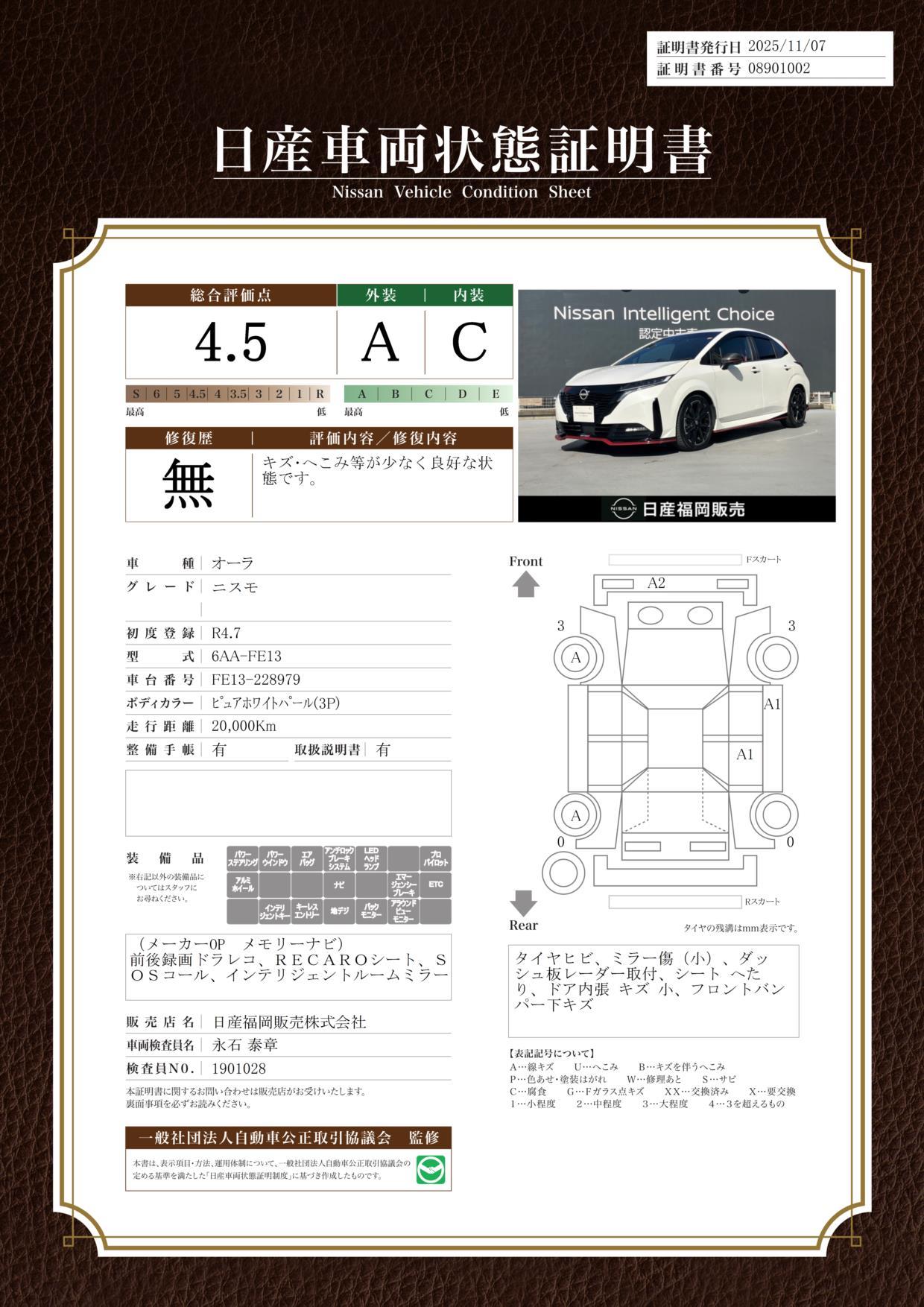 プレミアム認定中古車なら2年間、その他の車両は1年間保証。※車両価格30万円未満のお車は3か月間保証。■全国2,000以上の日産サービス工場が、あなたの愛車をサポートします。 また1ヶ月または1,000km点検が無料で付いております。 ご購入後も安心&快適ドライブ。