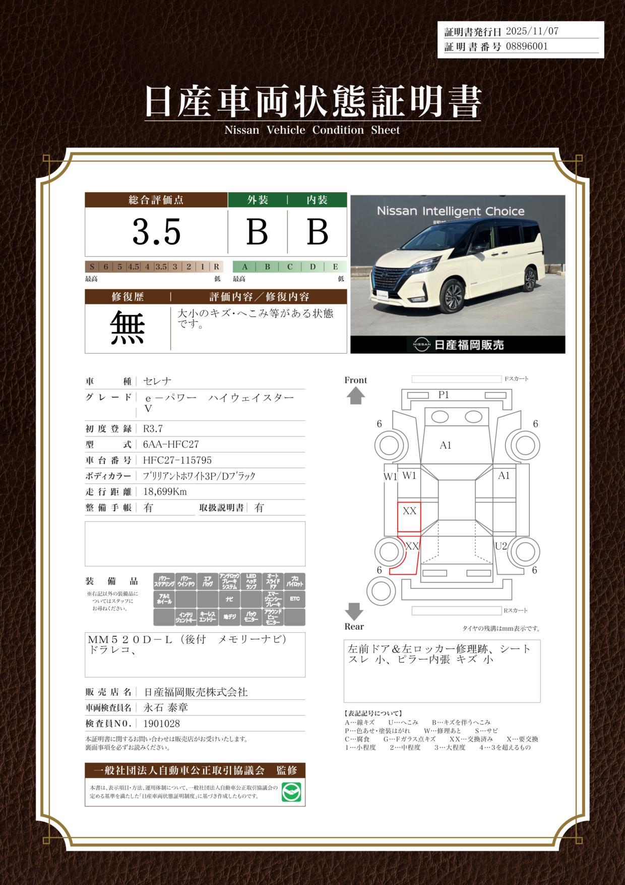 | 保証修理受付先 | 全国2,000以上の日産サービス工場 遠方のお客様もご安心ください※1部取り扱っていない販売店がございます |