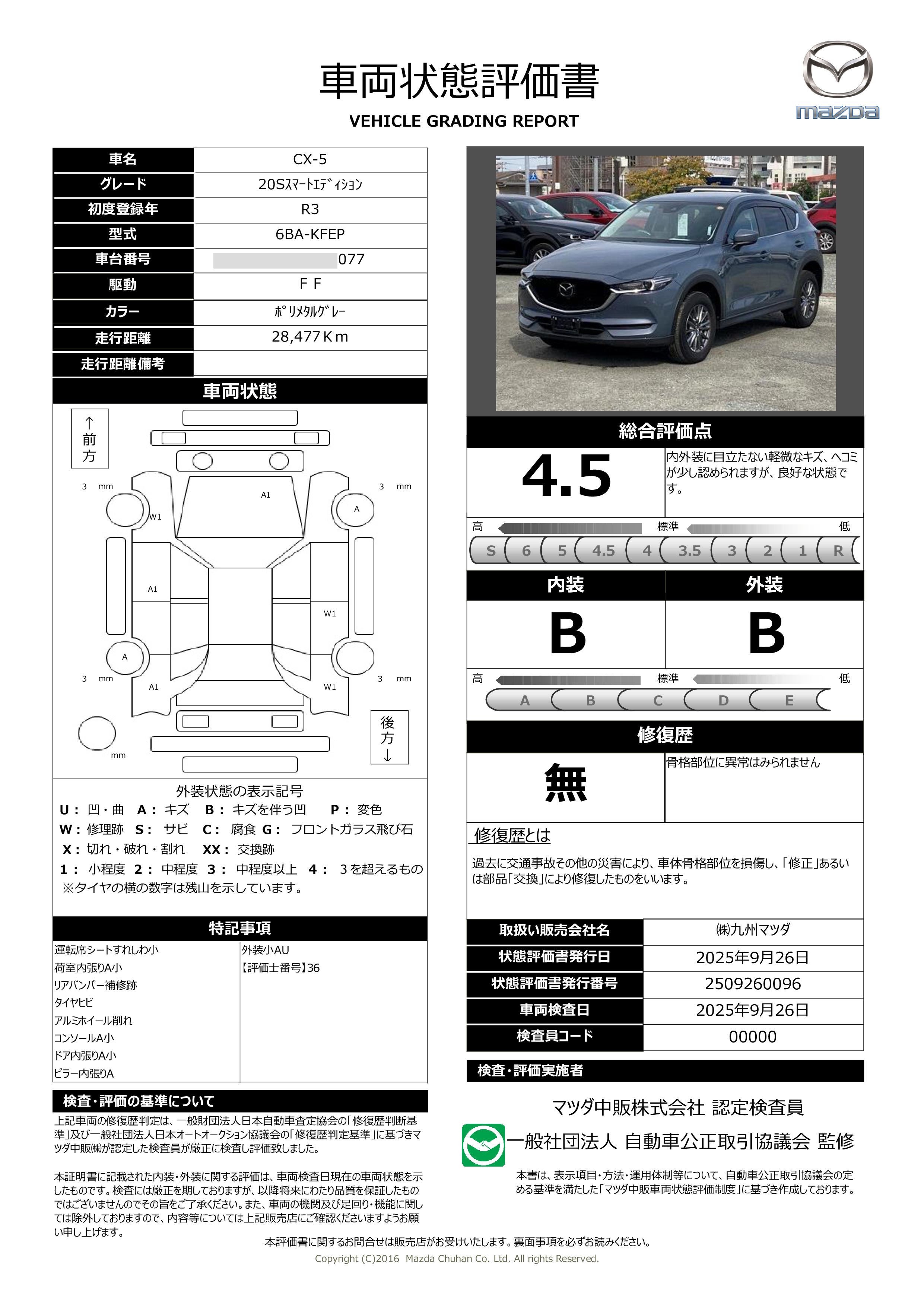 • また、修復歴・法定整備・保証の有無ならびに詳細内容につきましても、必ず各販売店にご確認いただきますようお願いいたします。