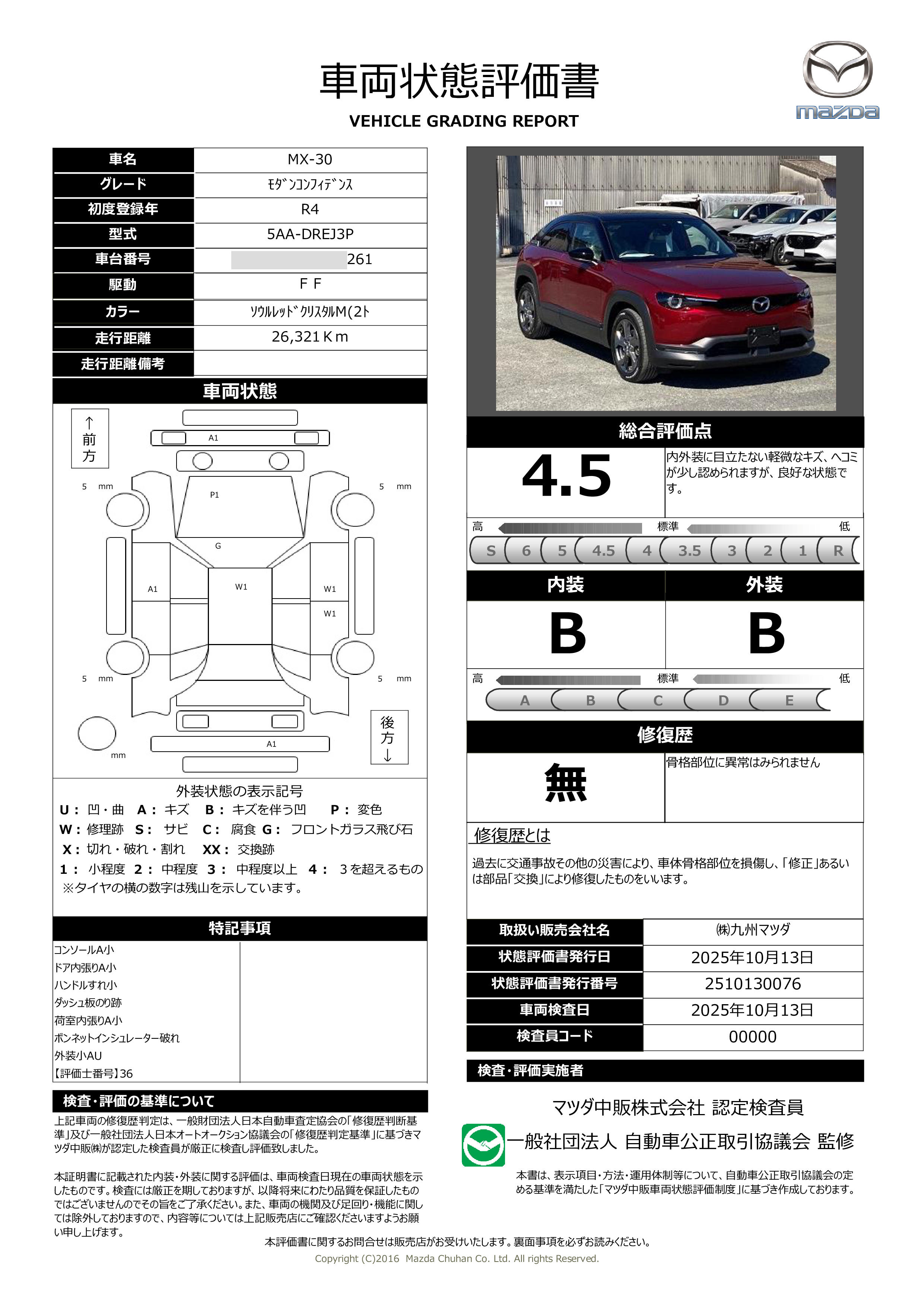 九州マツダでは「本体価格35万円以上」の中古車をご購入のお客様には全車保証期間として納車から1年・走行距離無制限の保証をお付けしております。詳しくはスタッフまでお問い合わせください。