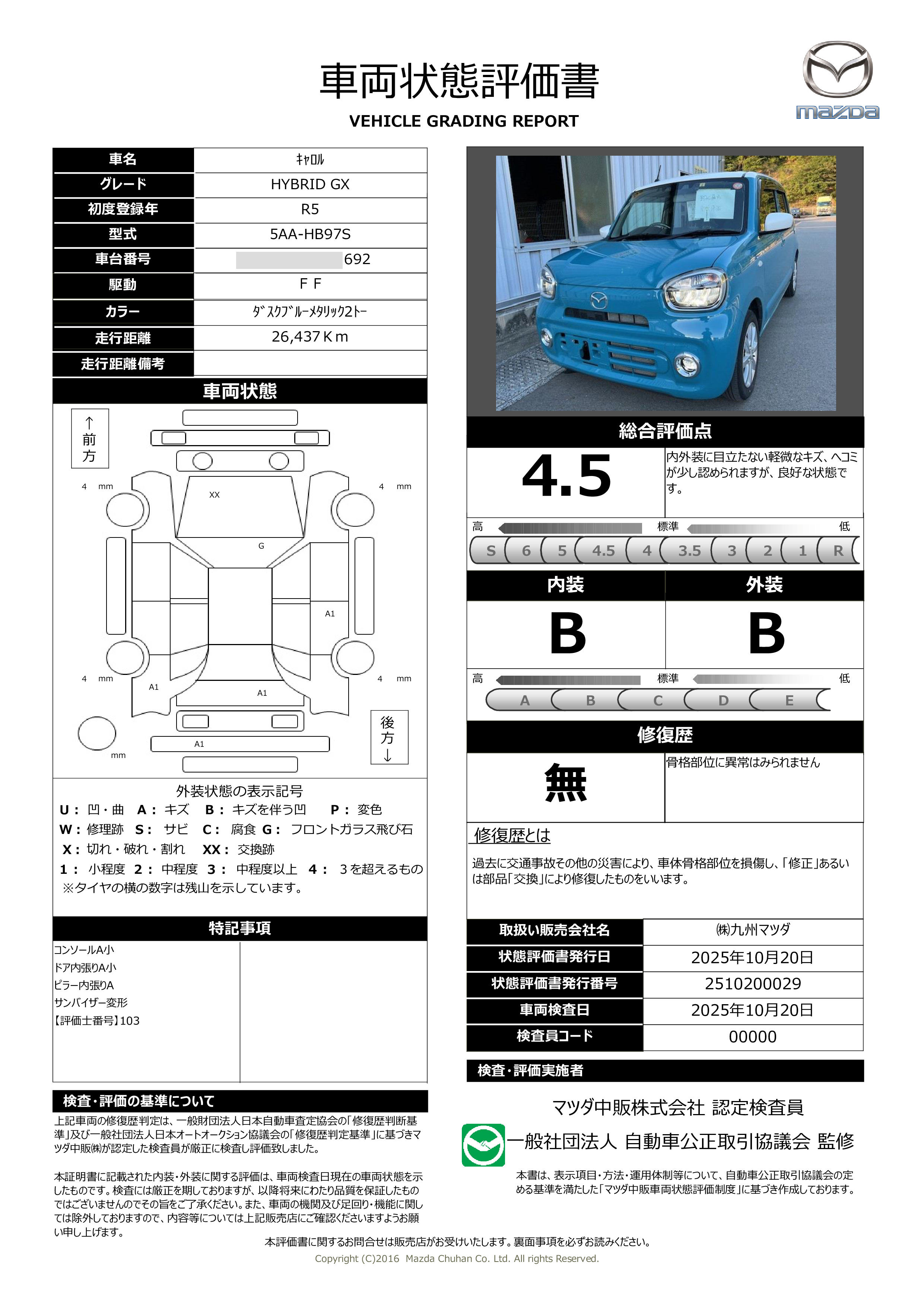 【マツダ認定U−car6つのポイント】1 第三者機関による車両状態評価書の添付 21年間走行距離無制限保証 3定期点検整備実施 47品目の部品交換 (点検の結果十分に良好と確認できた部品は交換しない場合もあります) 51か月無料点検 6マツダ認定U−car認定証の発行