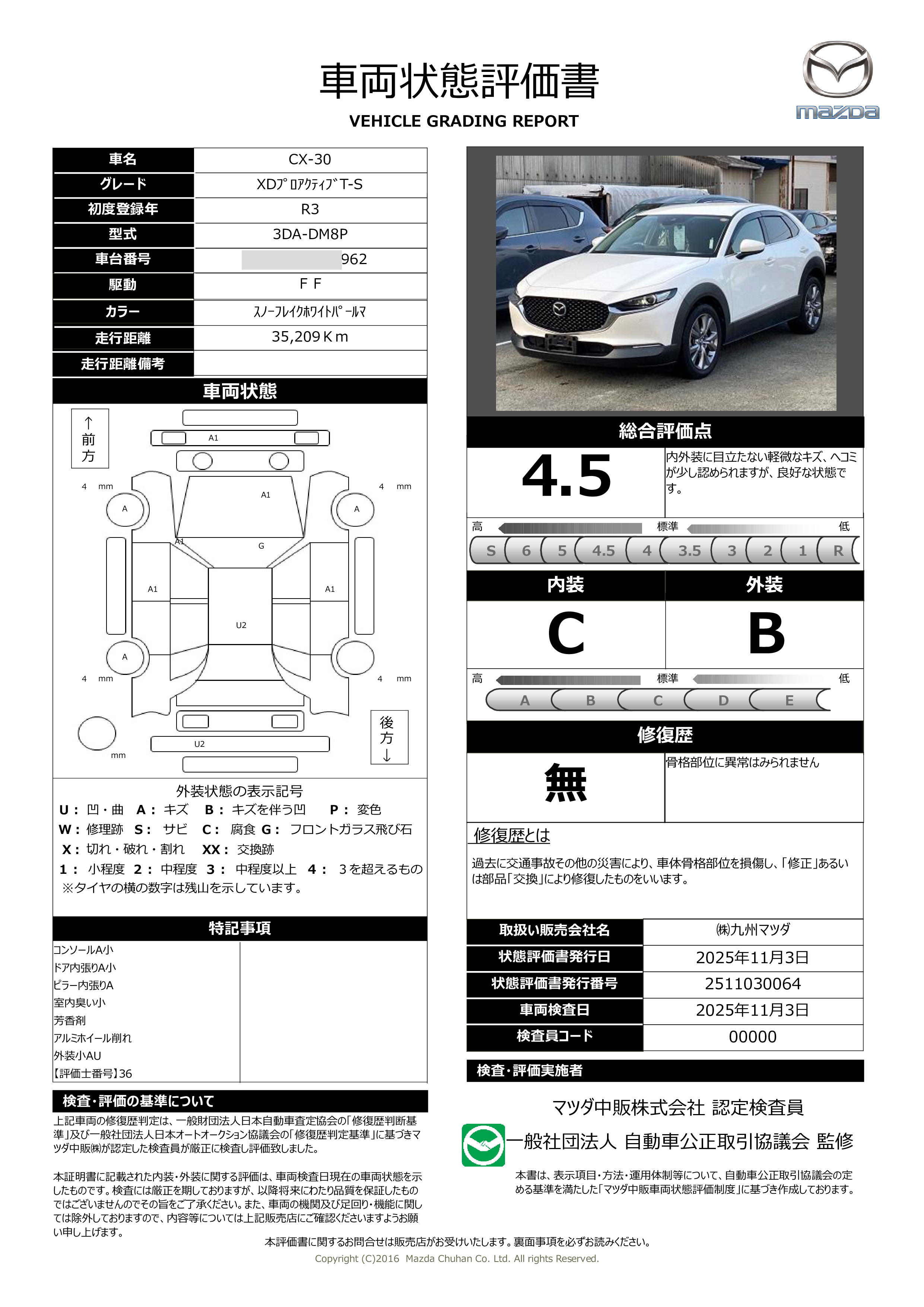 九州マツダでは「本体価格35万円以上」の中古車をご購入のお客様には全車保証期間として納車から1年・走行距離無制限の保証をお付けしております。詳しくはスタッフまでお問い合わせください。
