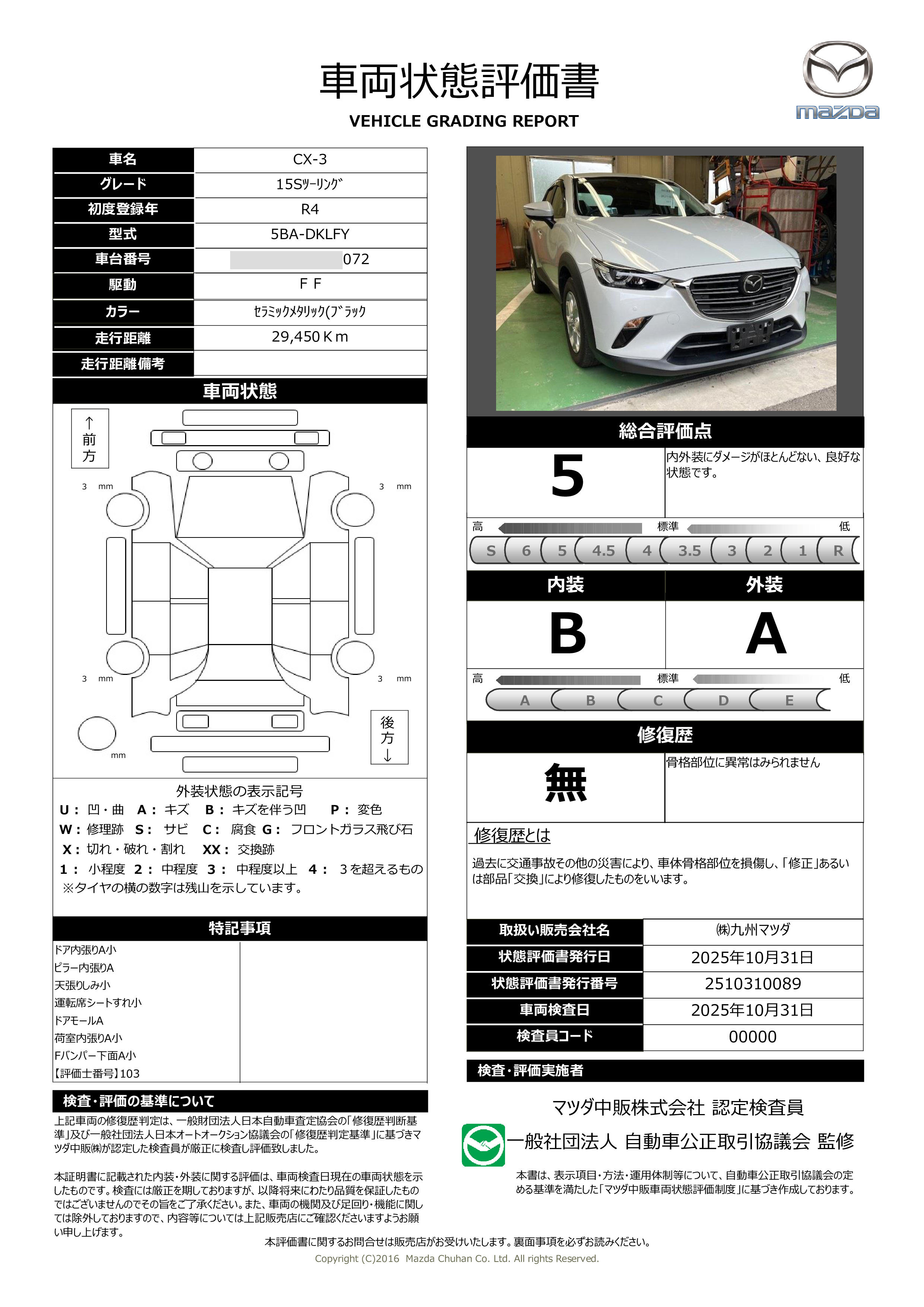 | 保証項目 | エンジン機構/動力伝達機構/ステアリング機構/サスペンション機構/排ガス浄化機構/電子制御機構/乗員保護機構/ ハイブリッド機構/以下除く全部品(ボディ内・外装品/ナビ・オーディオ/消耗部品・油脂類) |
