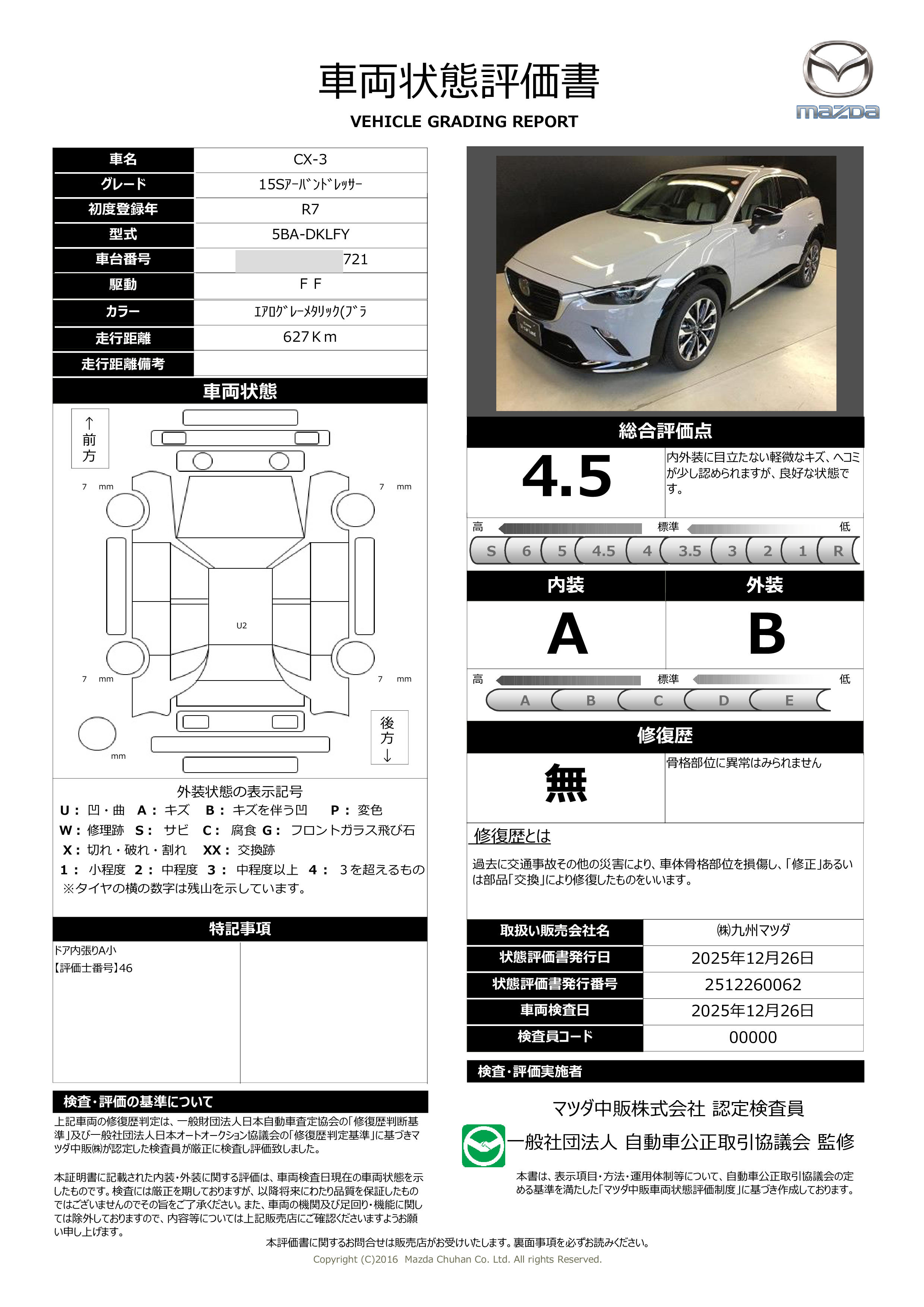 九州マツダでは「本体価格35万円以上」の中古車をご購入のお客様には全車保証期間として納車から1年・走行距離無制限の保証をお付けしております。詳しくはスタッフまでお問い合わせください。