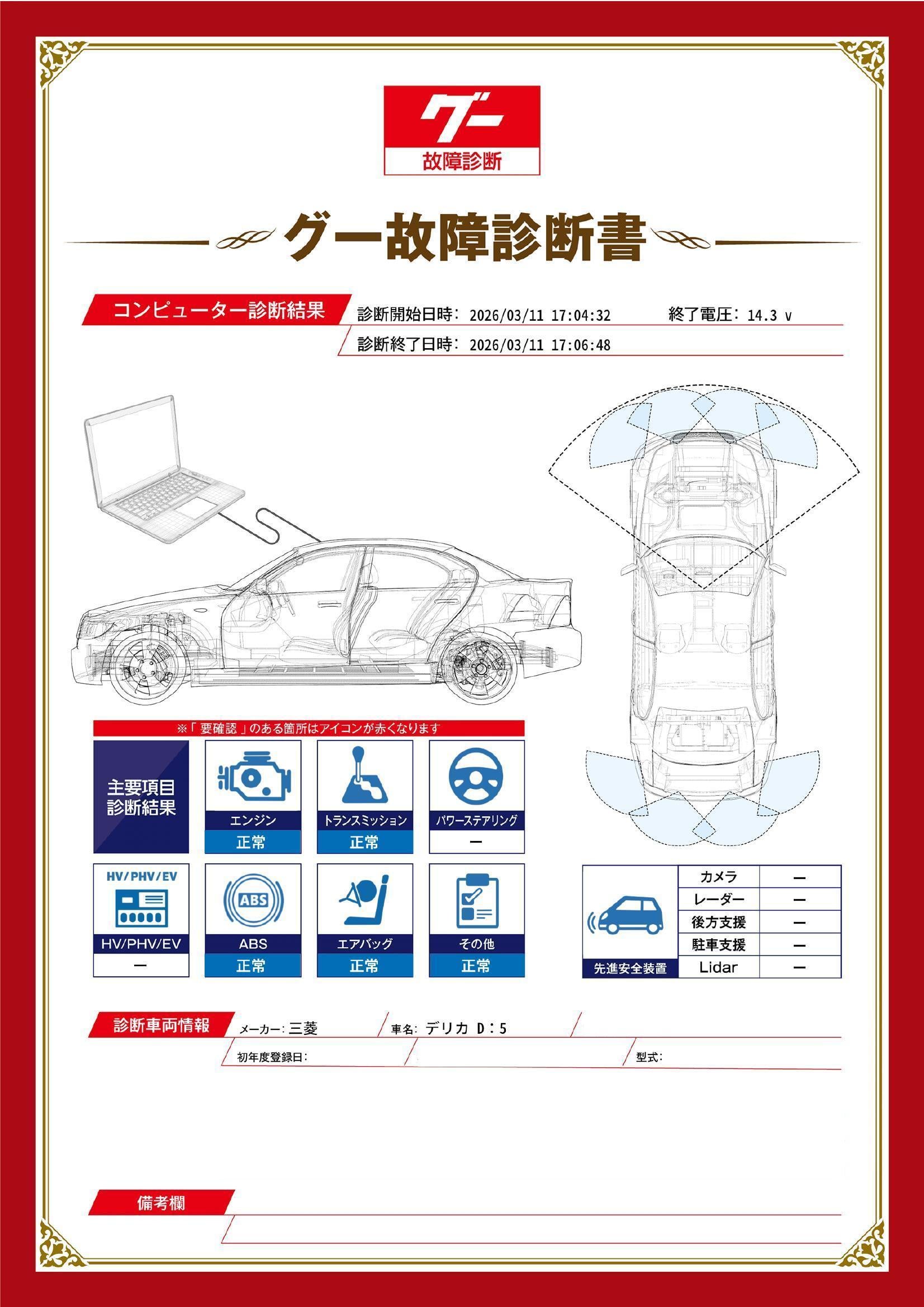 保証項目 3ヶ月・3000km以内ならエンジン、トランスミッション、ハイブリッド、ステアリング、ブレーキの各機構における主要項目を無償修理(または交換)いたします。