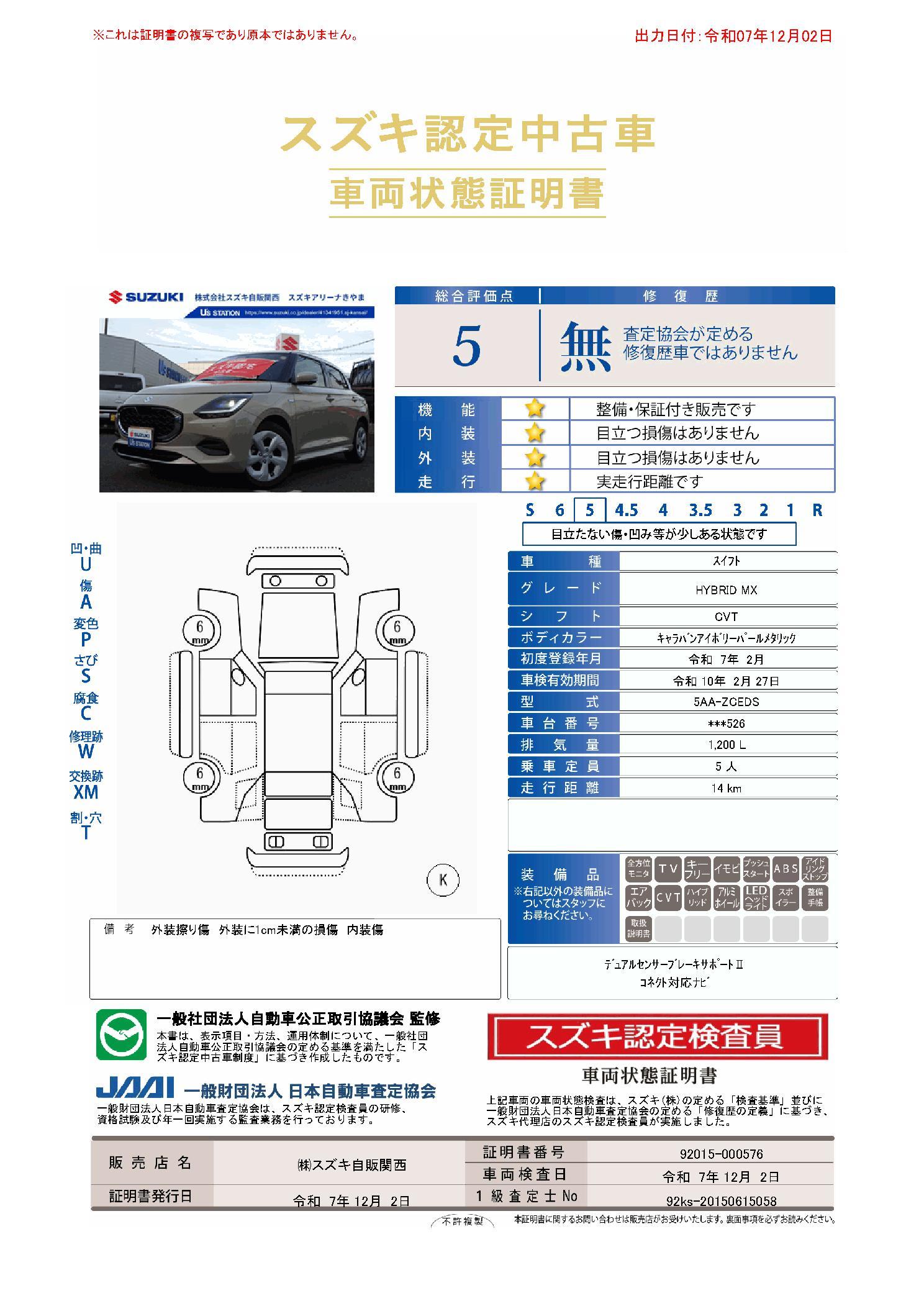 全車スズキの保証付きですので、安心してお買い求めください。年式や走行距離によって保証内容が異なりますので、詳しくは営業スタッフにお尋ね下さい。 2