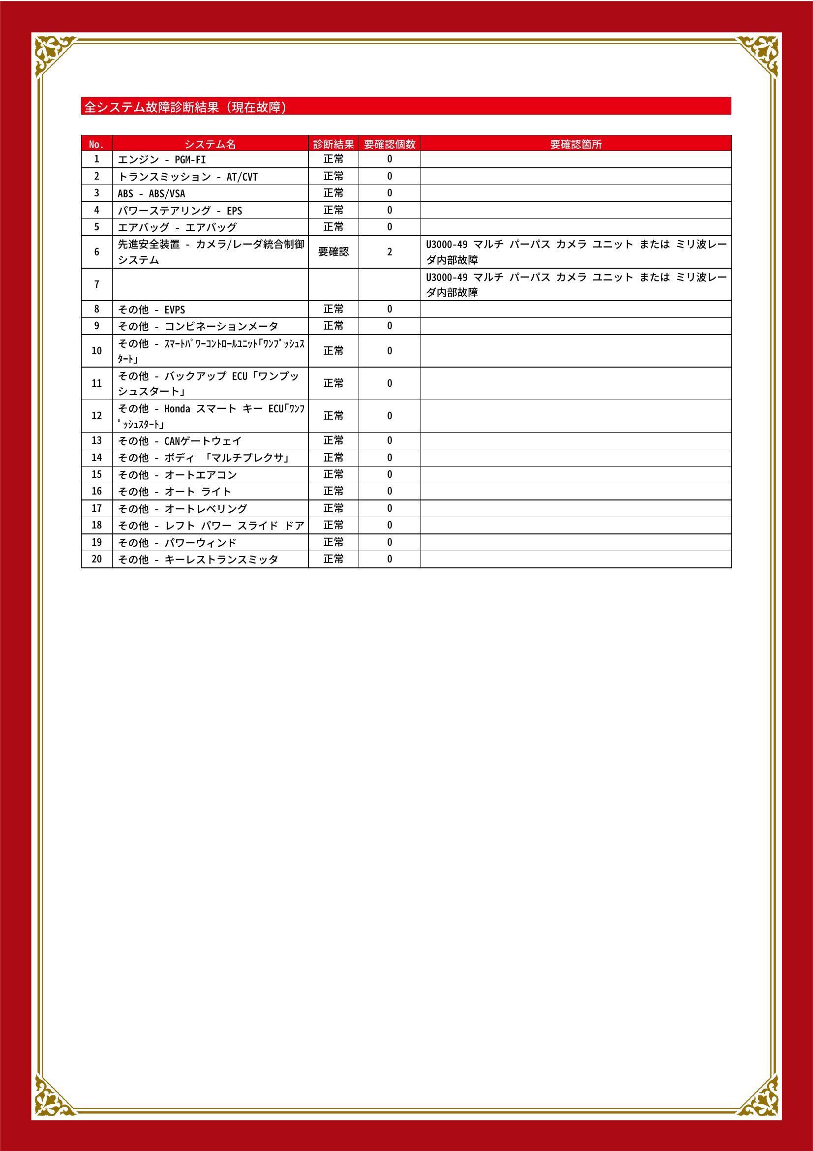 [保証付]:1ヶ月・1000km ※いずれか早い時期が保証適用の条件となります。 業界高水準、最長保証期間はなんと15年。保証項目406部位。任意による1年毎の更新が可能な新しいアフターサービス「GOOD SPEEDオリジナル プレミアムワランティー」をご用意させて頂いております。 |