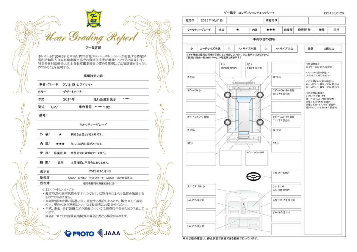 [保証付]:1ヶ月・1000km ※いずれか早い時期が保証適用の条件となります。 業界高水準、最長保証期間はなんと15年。保証項目406部位。任意による1年毎の更新が可能な新しいアフターサービス「GOOD SPEEDオリジナル プレミアムワランティー」をご用意させて頂いております。 |