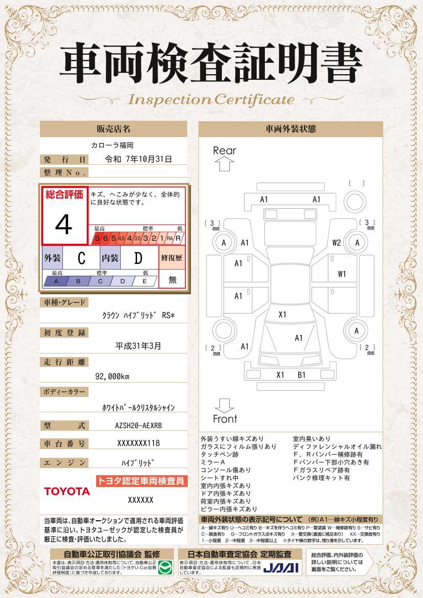 修復歴 なし 車体色 ホワイトパールクリスタルシャイン