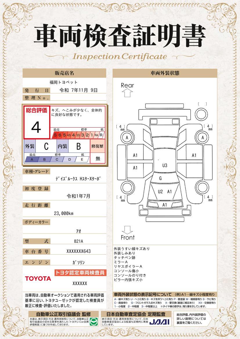[保証付]:12ヶ月・走行無制限 走行キロ無制限・1年間の保証付!保証費用は車両本体価格に含まれます。約60項目、5000部品が保証対象。全国5000ヵ所のトヨタディラーにて保証修理が可能です。※詳しくはスタッフまでお尋ねください。 |