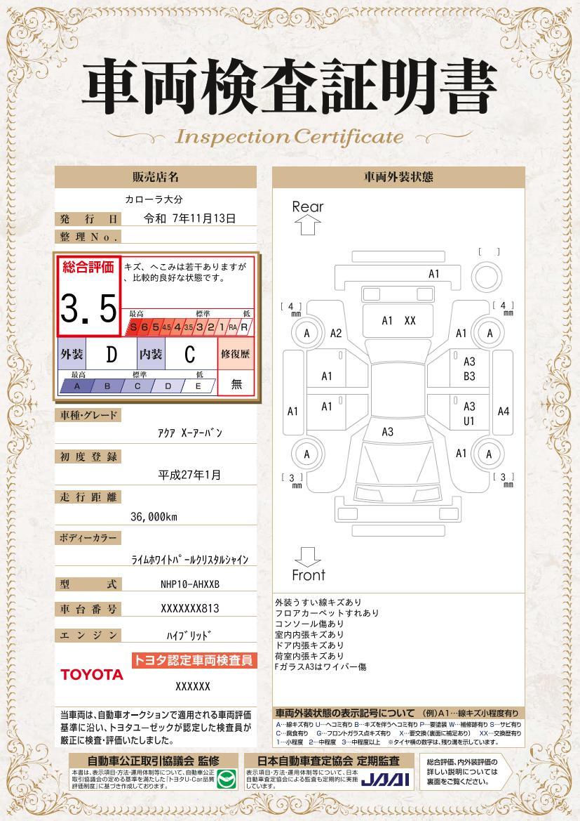 [保証付]:12ヶ月・走行無制限 ロングラン保証1年<走行距離無制限> +ハイブリッド保証<保証期間は初度登録年月から10年目まで、もしくは3年間のいずれか長い方。但し走行距離20万キロまで> |