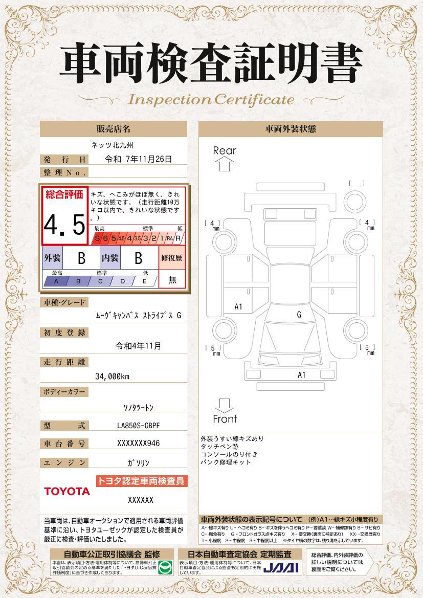 ご購入後の走行距離は無制限。1年間の無料保証がついています。約60項目、5,000部品が保証対象。エンジン、トランスミッションをはじめ全ての機能部品が保証対象です。(ボディ内外装部品・塗装・錆、消耗部品、油脂類は除きます)※アウトレット車、貨物車に関しては保証対象外となります。