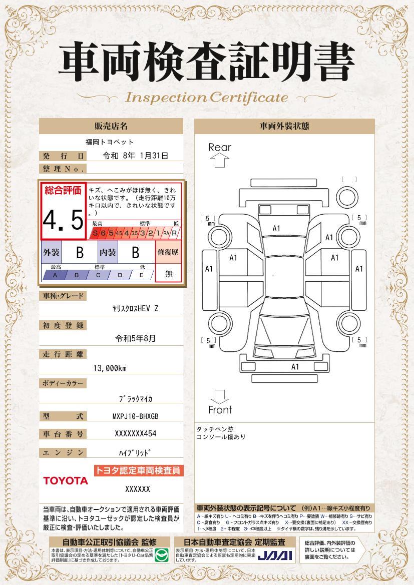 [保証付]:12ヶ月・走行無制限 走行キロ無制限・1年間の保証付!保証費用は車両本体価格に含まれます。約60項目、5000部品が保証対象。全国5000ヵ所のトヨタディラーにて保証修理が可能です。※詳しくはスタッフまでお尋ねください。 |