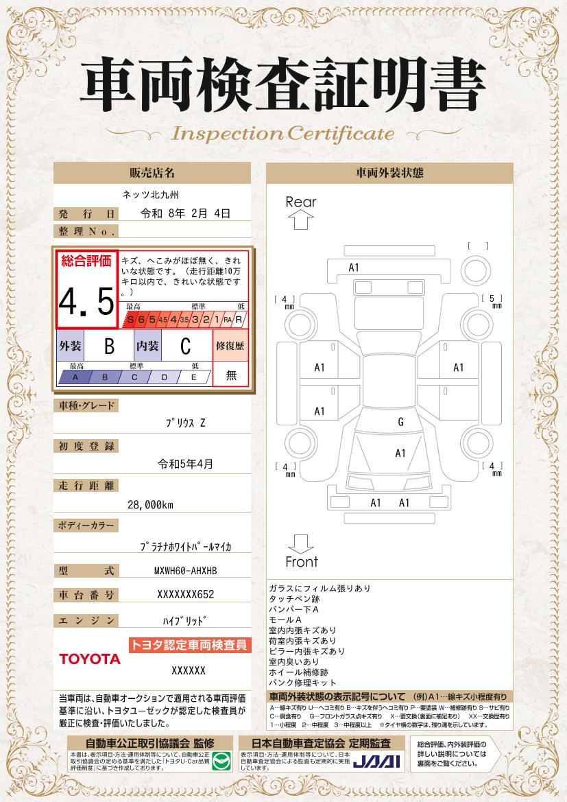 トヨタ プリウス Z 1年保証 フルセグ ミュージックプレイヤー接続可 電動シート Pバックドア シートクーラー 全周囲カメラ バックカメラ BSモニタ− 衝突被害軽減システム ETC ドラレコ LED スマートキー