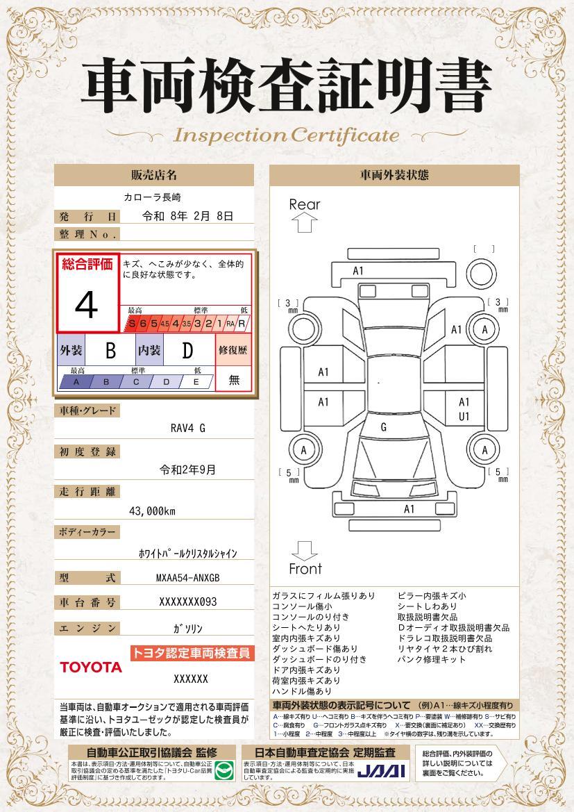 トヨタ RAV4 G 4WD フルセグ ミュージックプレイヤー接続可 バックカメラ 衝突被害軽減システム ETC ドラレコ LEDヘッドランプ 記録簿