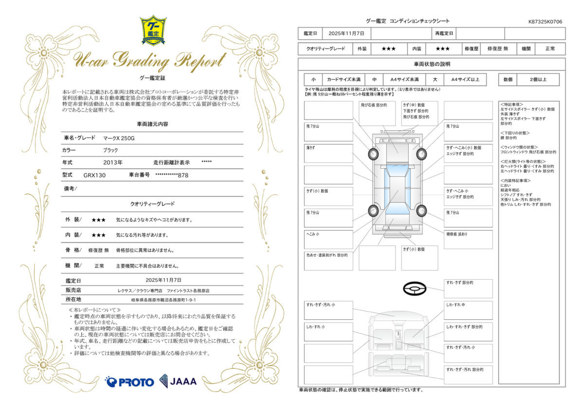 | 保証修理受付先 | 【6ヵ月無料保証】すべての車両に無料保証付帯で安心♪更に保証項目406部位、7年間の保証を別途ご用意いたしております。又、24時間対応のロードサービス付でフルサポート♪ |