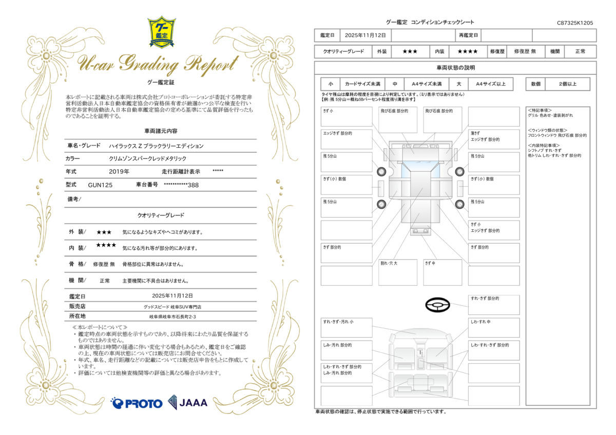 [保証付]:1ヶ月・1000km ※いずれか早い時期が保証適用の条件となります。 業界高水準、最長保証期間はなんと15年。保証項目406部位。任意による1年毎の更新が可能な新しいアフターサービス「GOOD SPEEDオリジナル プレミアムワランティー」をご用意させて頂いております。 |
