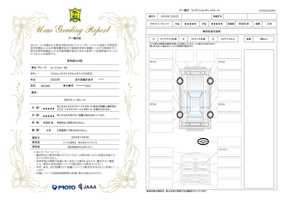 計999項目 業界初!これまでの常識を覆す全部位保証(消耗品・内外装パネル・油脂類除く)で、もしもの際に安心をお届けします。従来までの〇〇項目の保証では対応してない部位も対応し、最高水準の安心・安全をお届けします。 |