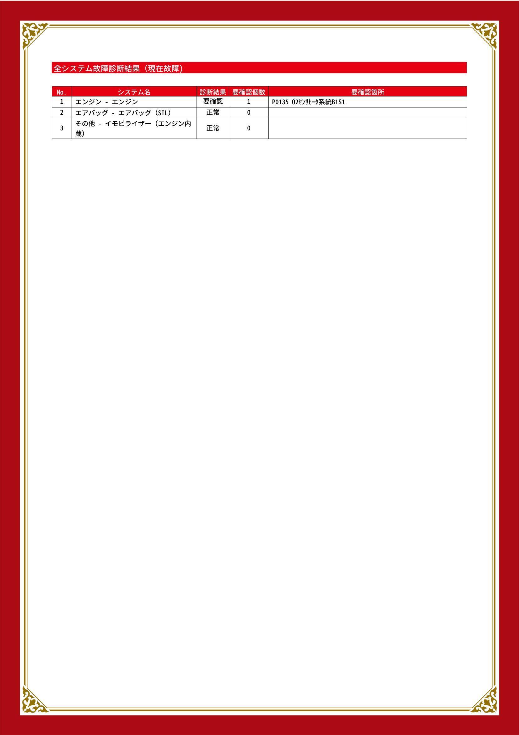 ゼノモーター無料保証について■対象になる項目エンジン主要部分のみ■上限金額上限3万円まで別途380項目プレミア保証のご案内も可能になりますのでスタッフへお問い合わせください。