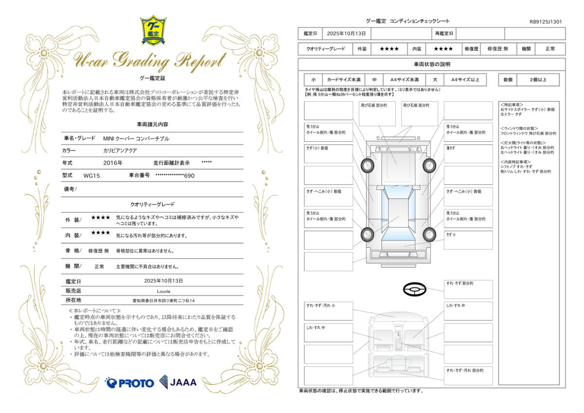 [保証付]:1ヶ月・1000km ※いずれか早い時期が保証適用の条件となります。 全車保証付き!上限金額は3万円までとなります。弊社へ車両ご入庫頂ける場合はより充実した保証をご用意しております。また、別途で有料保証ございます。詳しくはスタッフまでお気軽にお問い合わせください。 |
