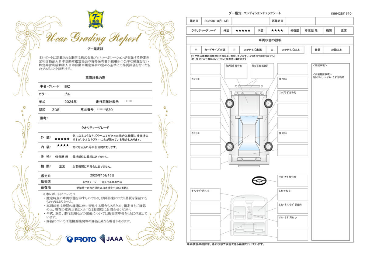 弊社では、全車『修復歴なし』のお車のみ取り扱っております。専任バイヤーによる厳選した仕入れの後、入庫後の車両チェックを行い、ネクステージが認定した高品質な中古車をご提供しております。 19