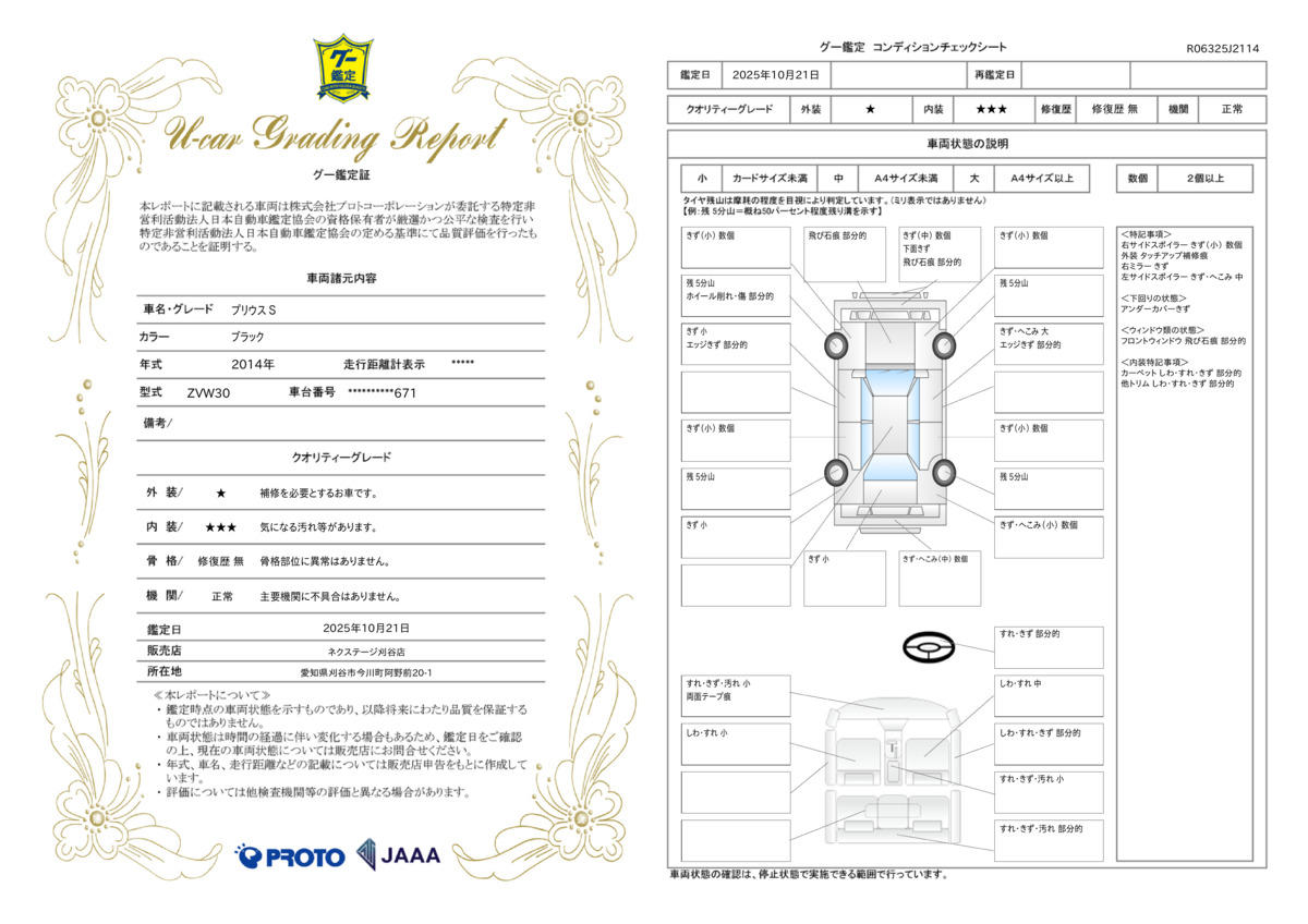 | 保証項目 | 3ヶ月・3000km以内ならエンジン、トランスミッション、ハイブリッド、ステアリング、ブレーキの各機構における主要項目を無償修理(または交換)いたします。 |