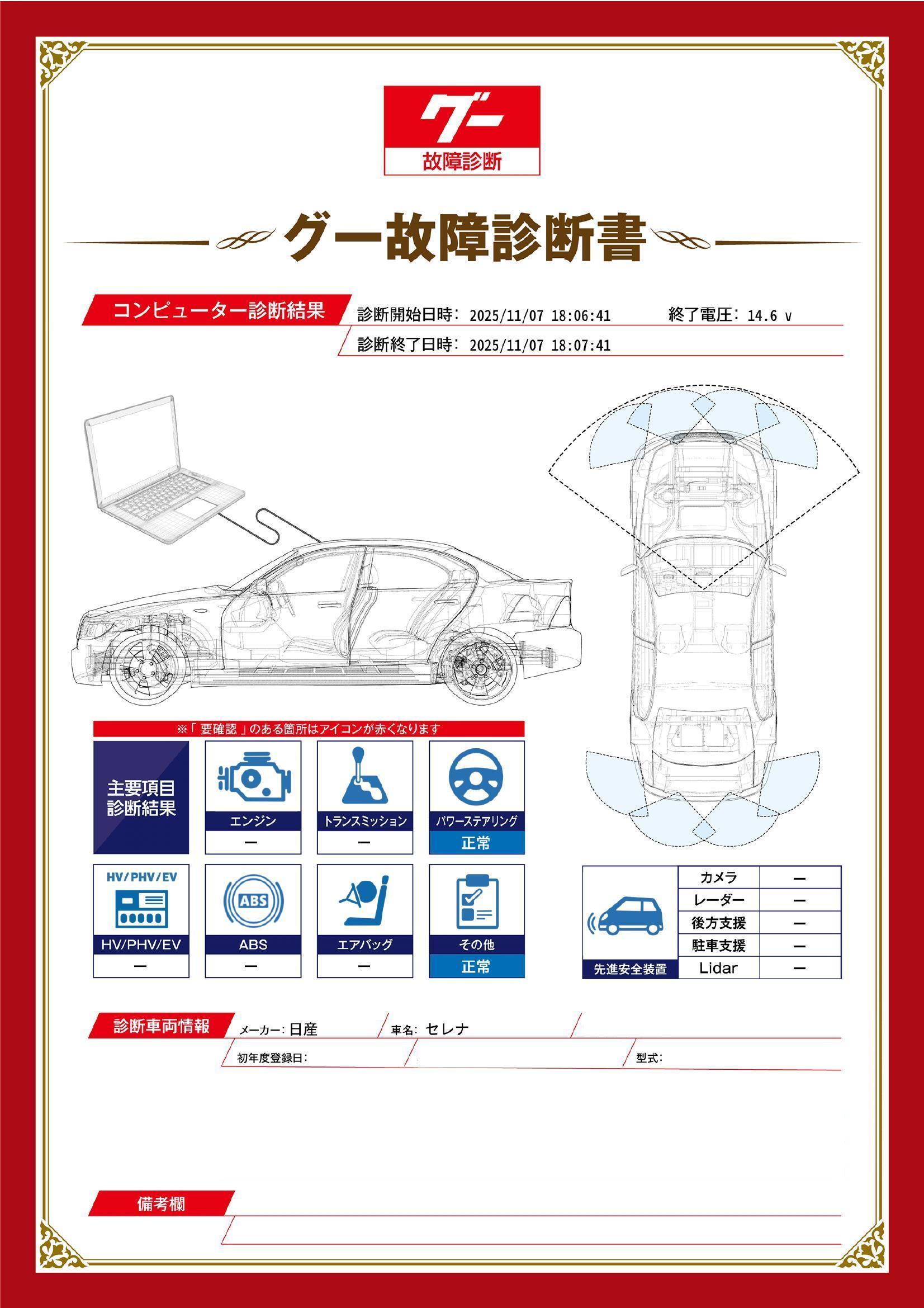 保証項目 3ヶ月・3000km以内ならエンジン、トランスミッション、ハイブリッド、ステアリング、ブレーキの各機構における主要項目を無償修理(または交換)いたします。