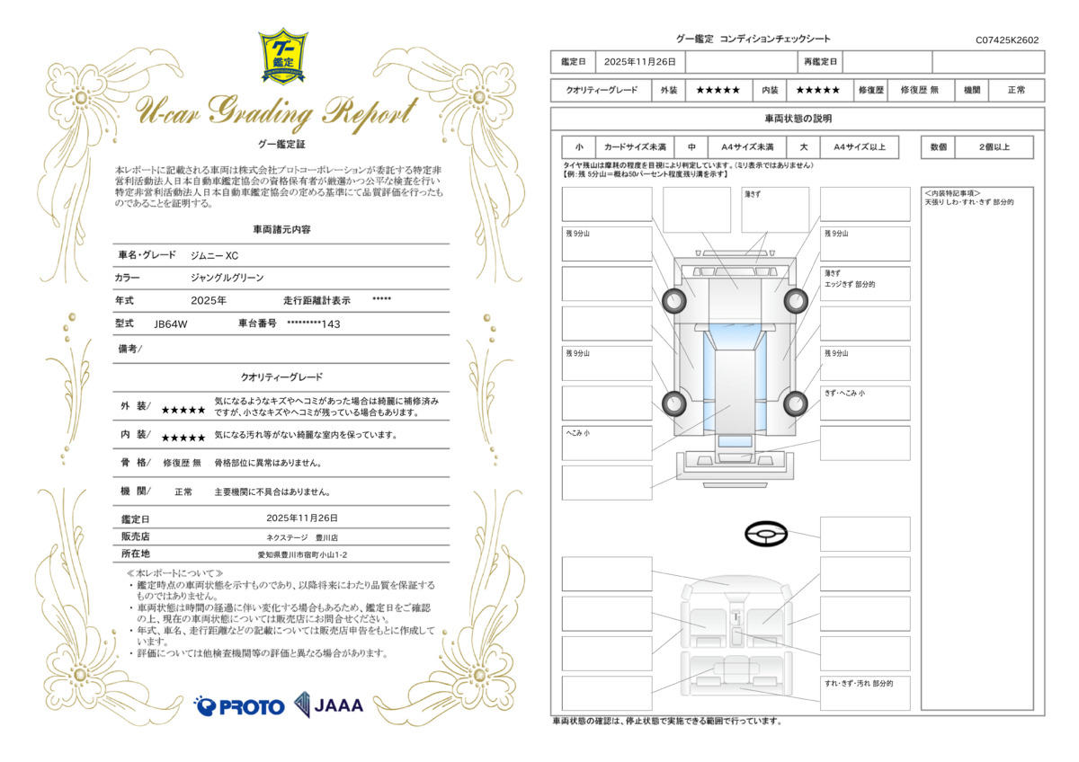 | 保証項目 | 3ヶ月・3000km以内ならエンジン、トランスミッション、ハイブリッド、ステアリング、ブレーキの各機構における主要項目を無償修理(または交換)いたします。 |