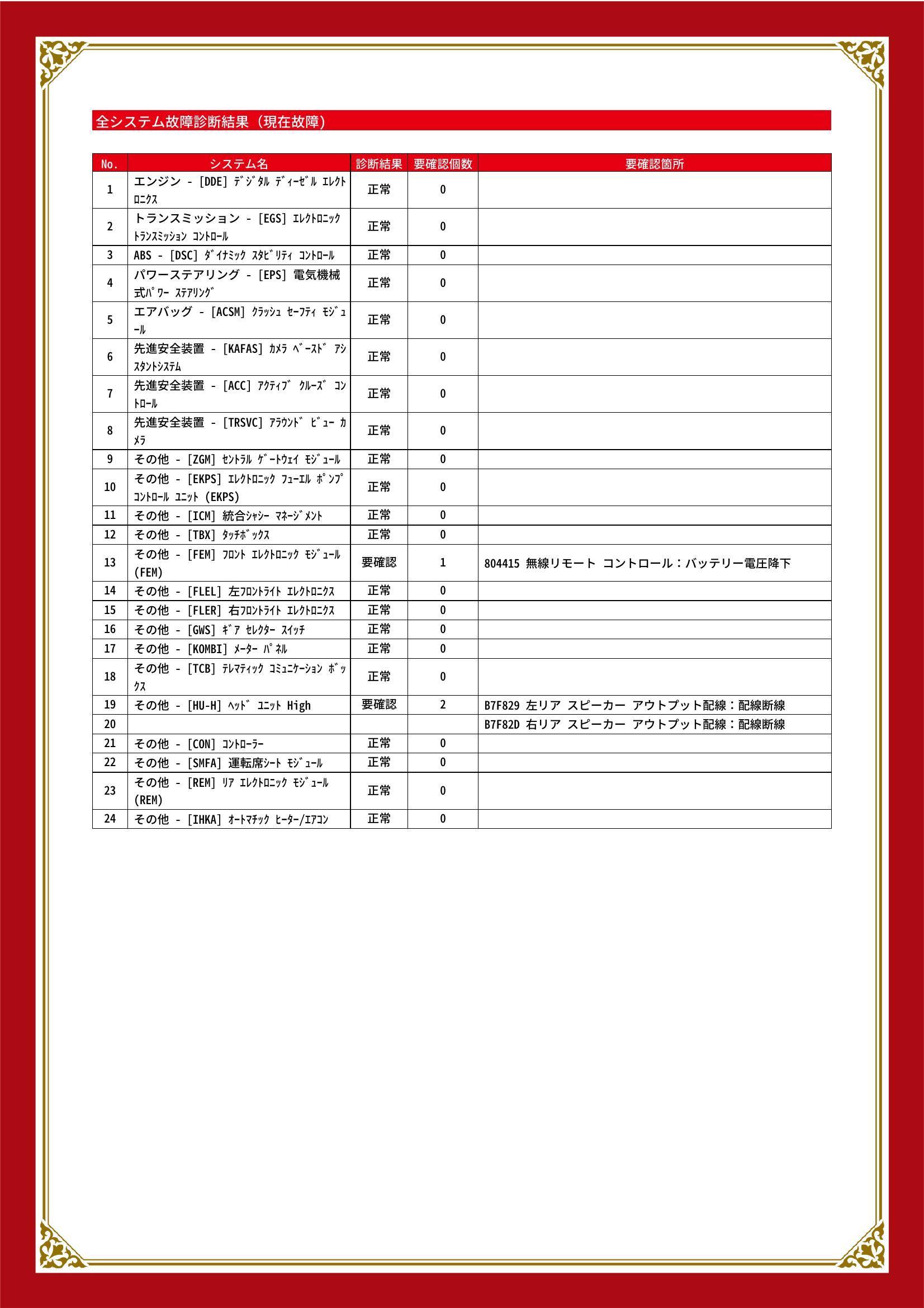 エンジンやミッションなど、「電子制御装置」等の事前故障診断を展示車全車に実施しております。 68