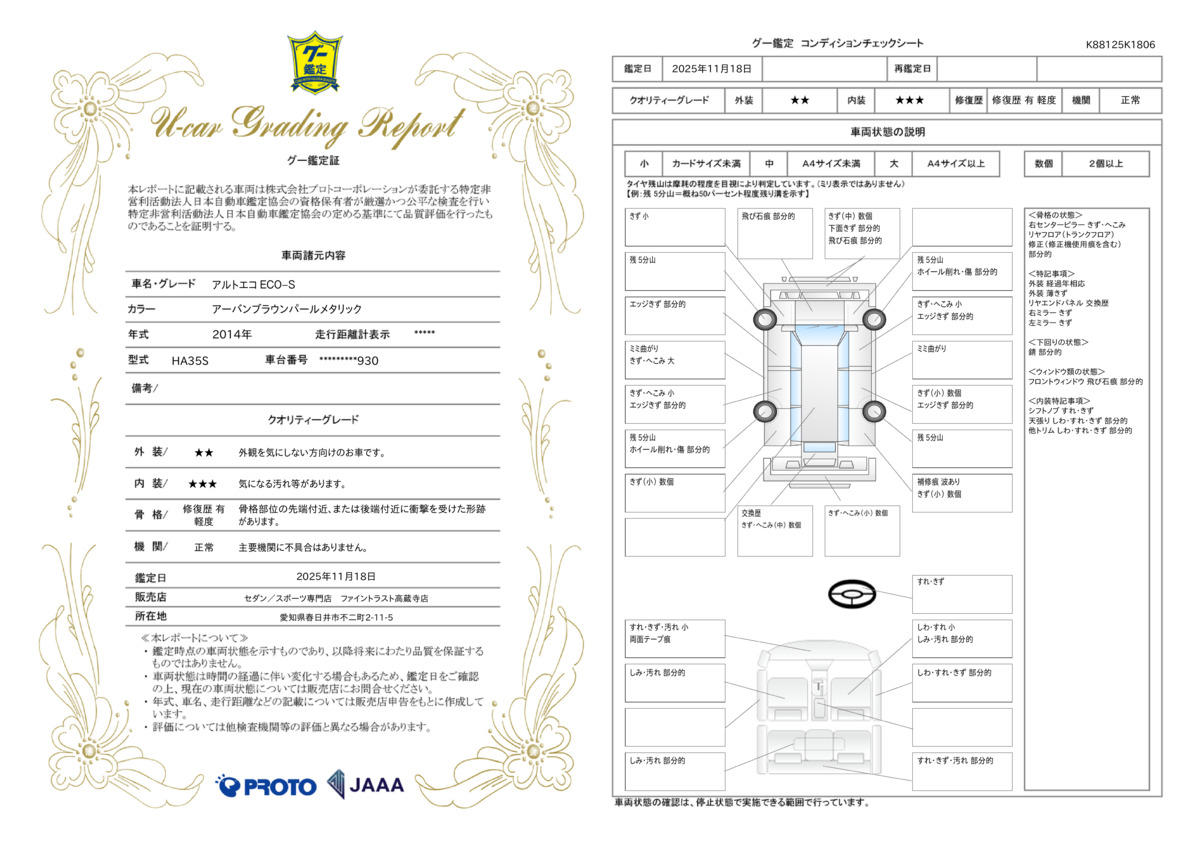 | 保証項目 | その他、スタンダード・プラチナ保証をご用意。【スタンダード・プラチナ保証】では対象項目が業界最高水準の400部位以上!消耗品以外は保証にてご対応出来ます。詳細は店舗へお問い合わせください! |