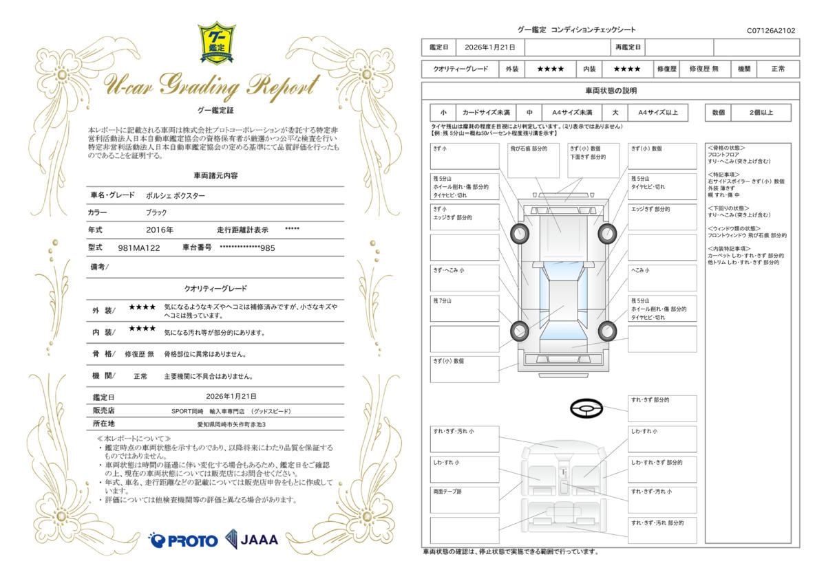 [保証付]:1ヶ月・1000km ※いずれか早い時期が保証適用の条件となります。 業界高水準、最長保証期間はなんと13年。保証項目238部位。任意による1年毎の更新が可能な新しいアフターサービス「GOOD SPEEDオリジナル プレミアムワランティー」をご用意させて頂いております。 |