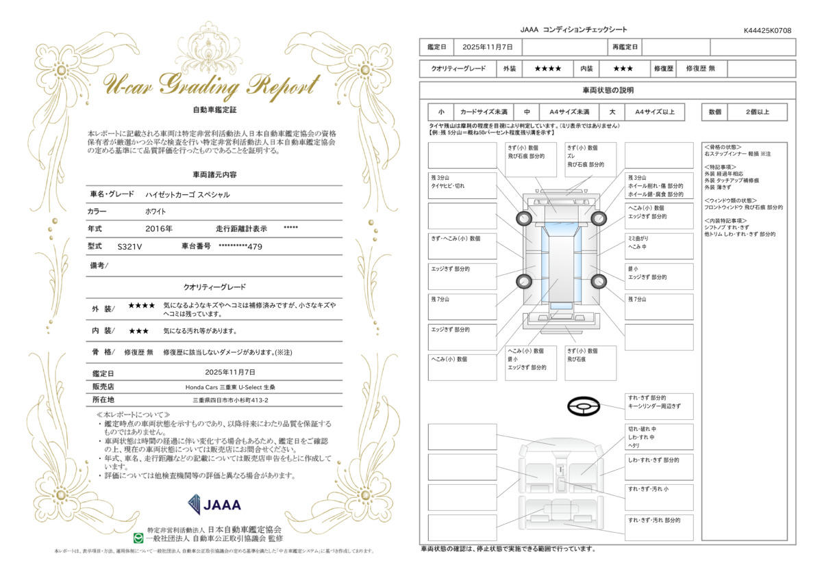 [保証付]:12ヶ月・走行無制限 ご購入のお車全てに保証が付いています。「ホッと保証」は、価格40万円以上の車両に対して1年間の保証を、「ホッと保証ライト」は、価格40万円未満の車両に対して3か月の保証となります。 |