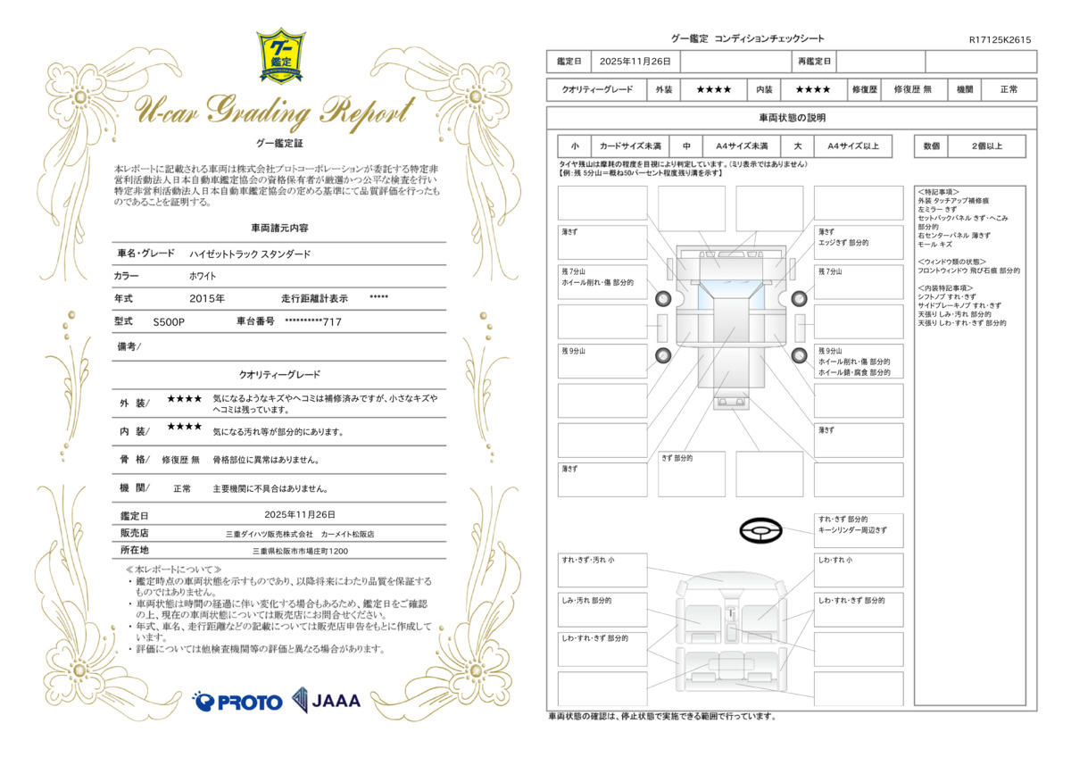 保証期間中の修理費用累計(税込み)が「車両販売価格(車両価格+消費税)」になります。保証修理の限度額を超えた修理費用については、お客様のご負担となります。詳しくは担当スタッフまでお問い合わせ下さい。 |