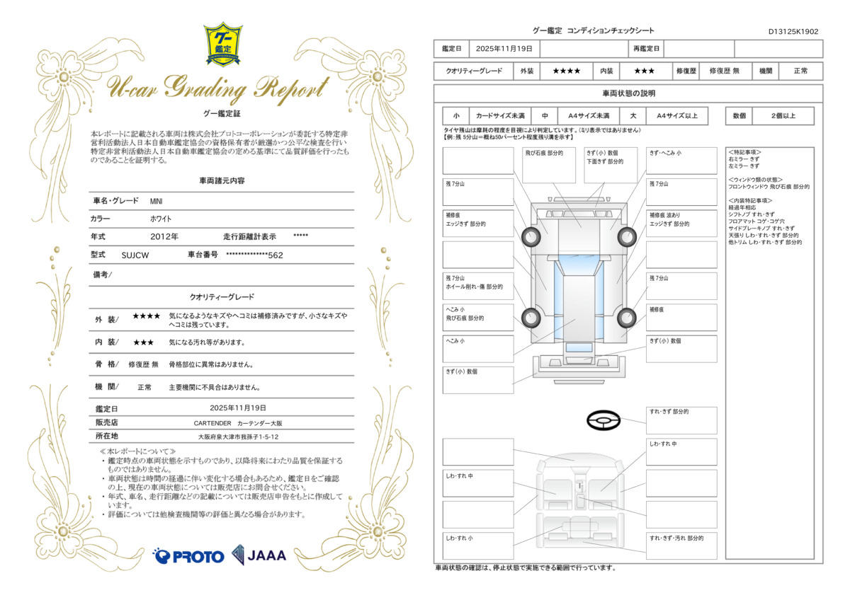 [保証付]:6ヶ月・走行無制限 安心の6ヵ月走行無制限の保証付き!保証項目は230点と充実保証!1年保証にグレードアップも可能!全国12,000社の整備ネットワークで、遠方でご購入いただいた方にも安心のカーライフをお届けできます! |