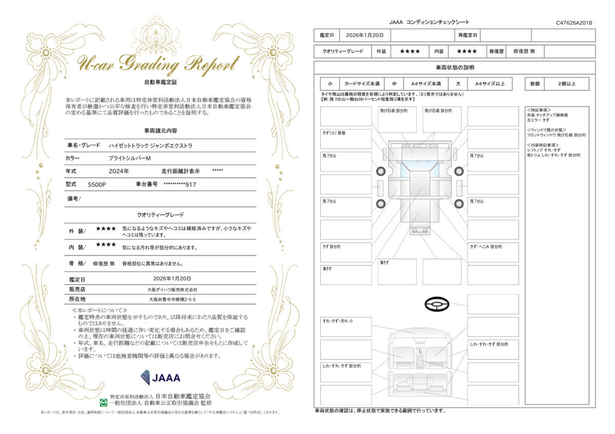 保証期間中の修理費用累計(税込み)が、車両販売価格(車両価格+消費税)になります。保証修理の限度額を超えた修理費用についてはお客様のご負担となります。詳しくは担当スタッフまでお問い合わせください。 |