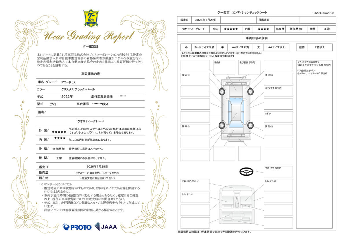 | 保証項目 | 3ヶ月・3000km以内ならエンジン、トランスミッション、ハイブリッド、ステアリング、ブレーキの各機構における主要項目を無償修理(または交換)いたします。 |