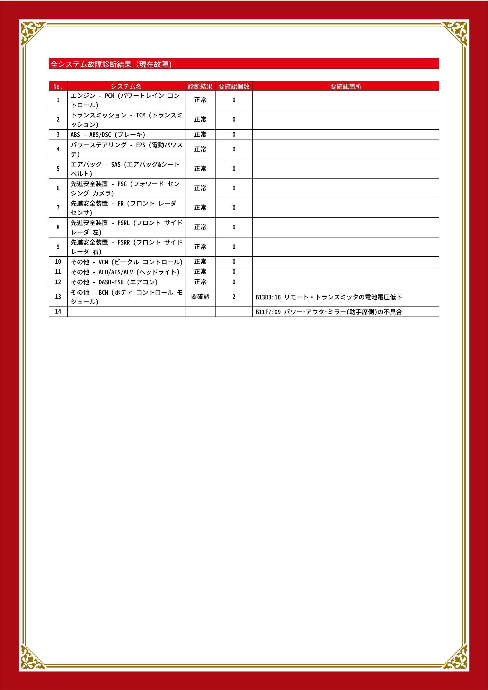 | 保証項目 | |