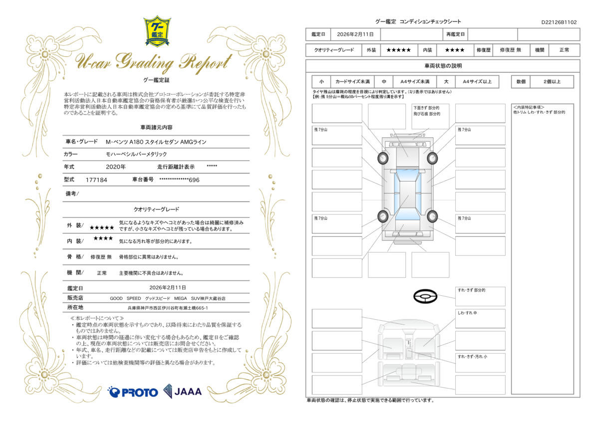 [保証付]:1ヶ月・1000km ※いずれか早い時期が保証適用の条件となります。 業界高水準、最長保証期間はなんと13年。保証項目238部位。任意による1年毎の更新が可能な新しいアフターサービス「GOOD SPEEDオリジナル プレミアムワランティー」をご用意させて頂いております。 |